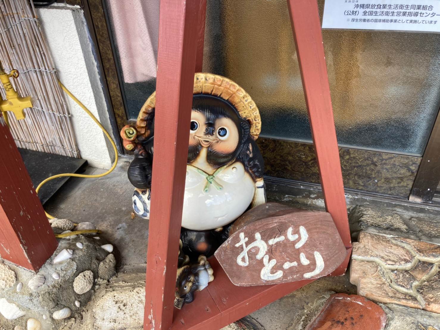 ▲石垣島の方言で「ようこそ、いらっしゃい!」という意味の「おーりとーり」。石垣島に入ってから何回か目にしましたが、こちらでもたぬきともにひょっこり看板がありました。