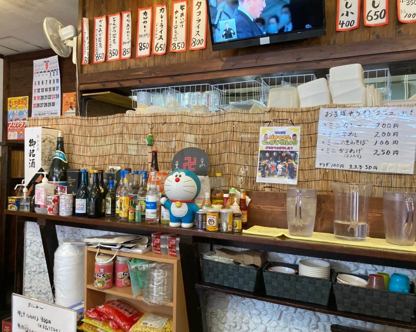 平然とズラッと並んでいる泡盛とか、ちょっとキリッとした表情のドラえもんとか、何故かおいてある東京卍のうちわとか、見ていて飽きない…