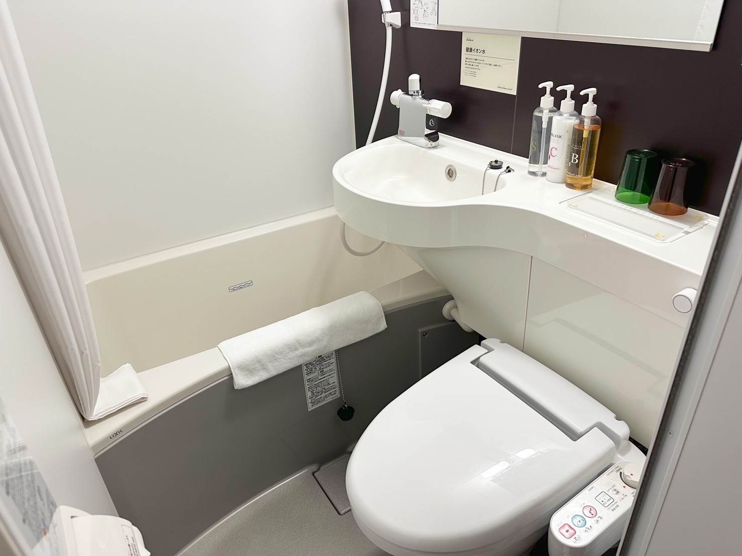 ▲バスルームはユニットバスタイプ。この手のビジネスホテルにしては少々スペースは小さめです。と言いつつ、大浴場を利用したので大きな問題ではないです。