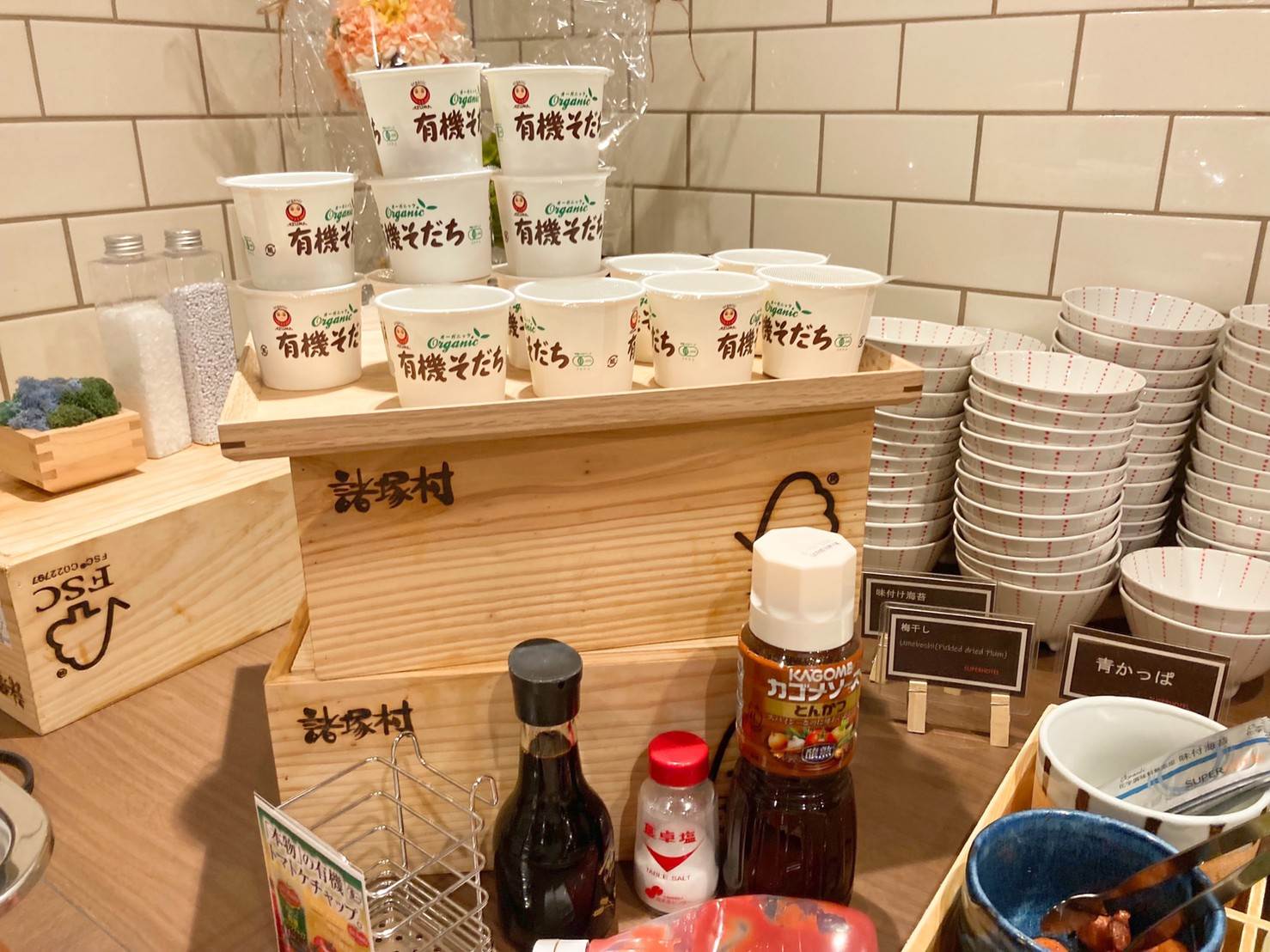▲その横には梅干し・のり・納豆と言ったご飯のお供が用意されていました。