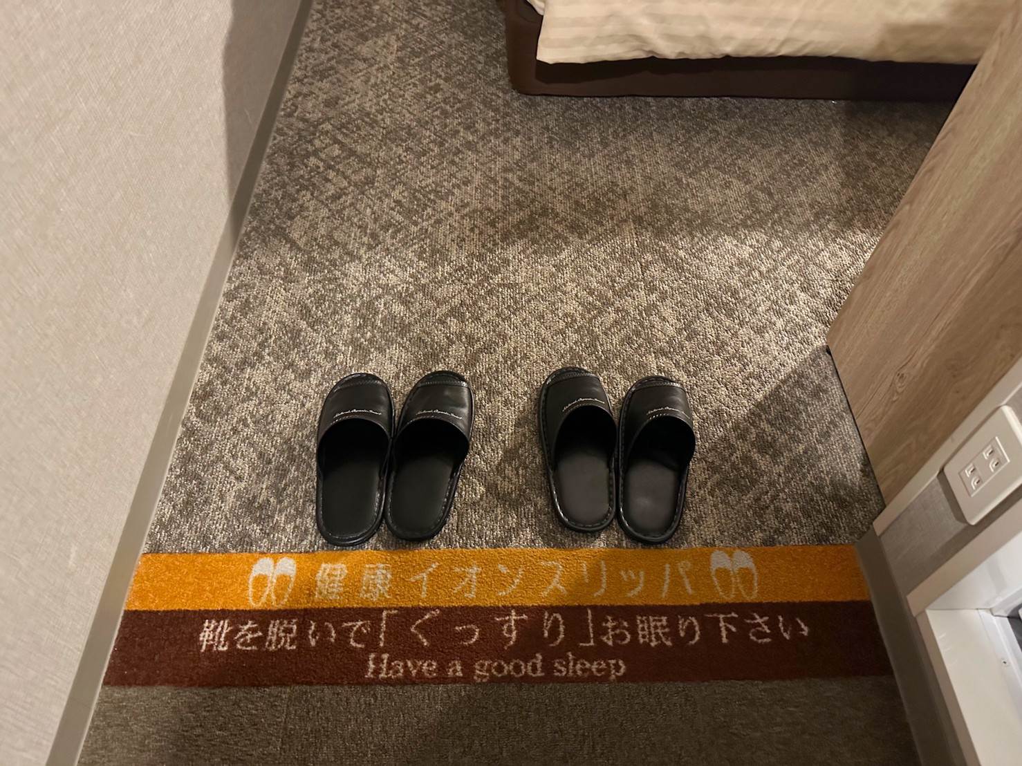 ▲驚いたのが、ホテルにしては珍しく靴を脱ぐスタイルだったこと。いまいち”健康イオンスリッパ”の意味がわかりませんが、靴を脱ぐスタイルは気持ちの上でとっても楽なので嬉しいです。