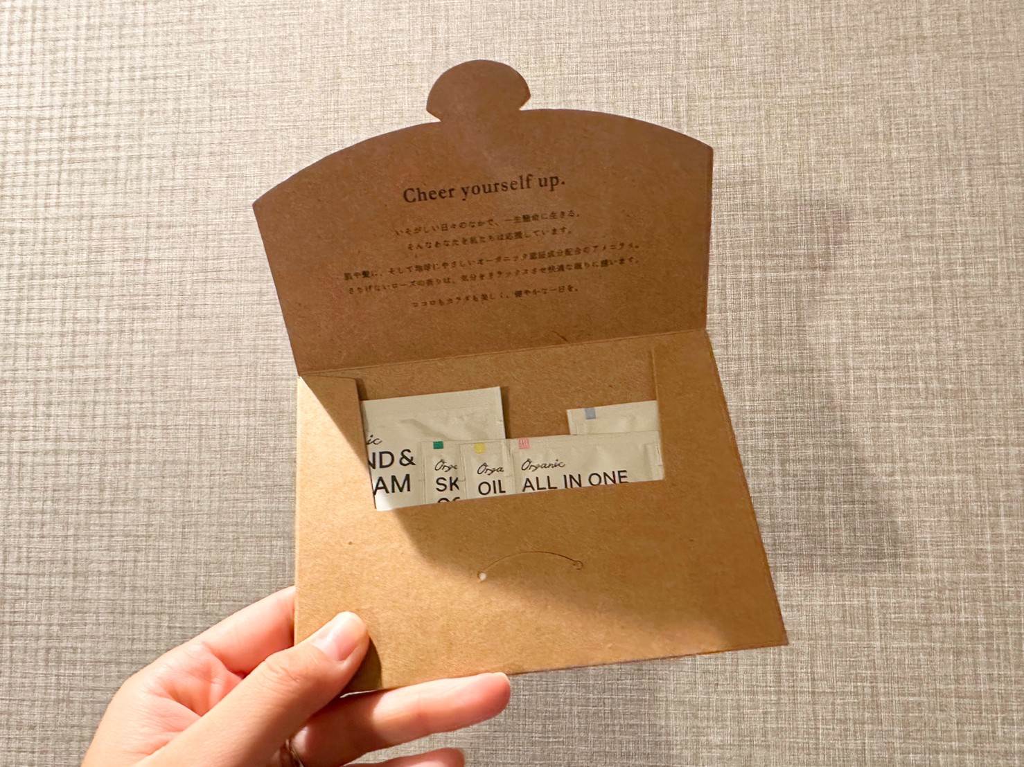 ▲女性の方はチェックイン時に基礎化粧品が詰め合わされたこちらのセットをいただけます。