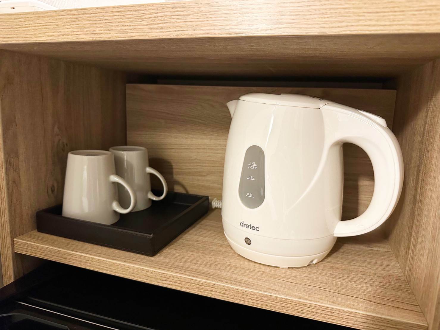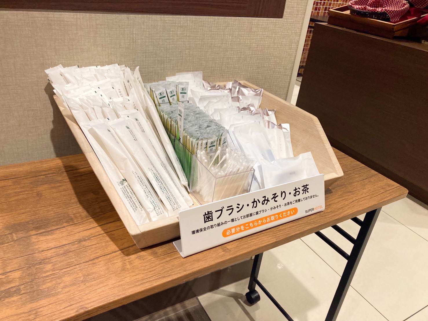 ▲歯ブラシ・かみそり・お茶もここから持っていくスタイル。お部屋にティーセットの用意は無いため、温かい飲み物を飲みたい場合はここでお茶を頂いていくと良いですね。