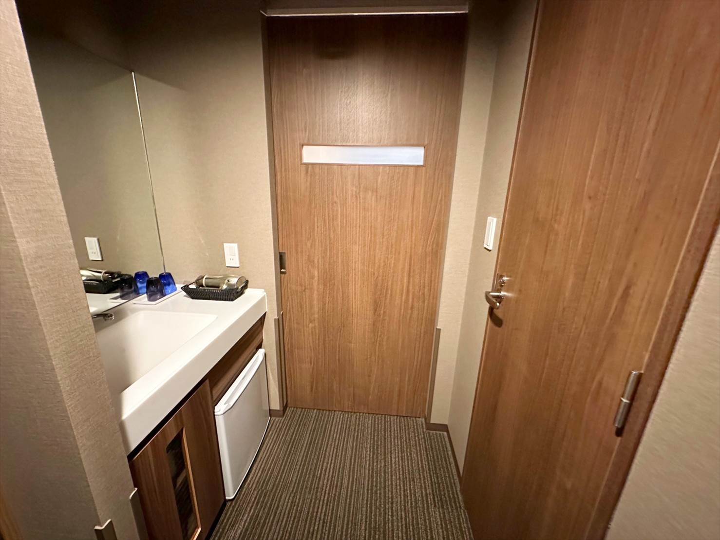ドアを開けて目に飛び込んできたのはドア。ドア。洗面台。このレイアウトは予想外。