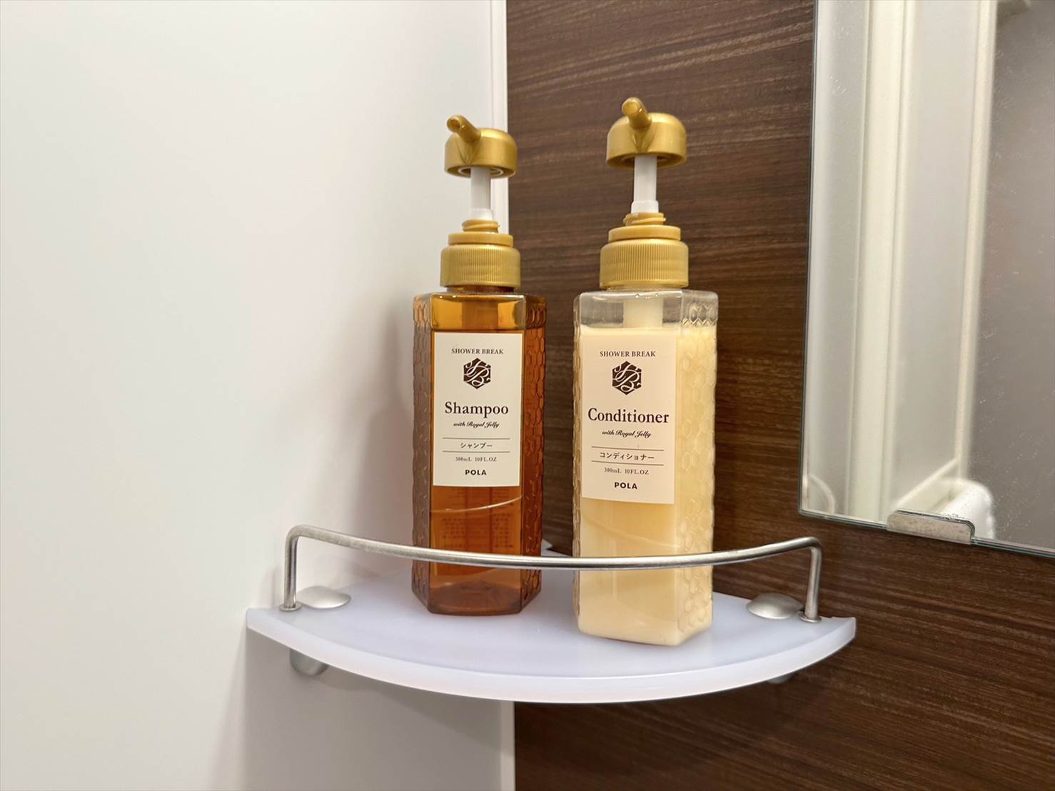▲シャワーブース内にはシャンプーとコンディショナー。