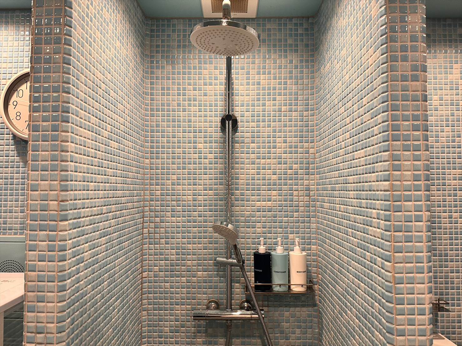 ▲そのとなりにはシャワーブースも。シャンプー・コンディショナー・ボディソープも完備されているので、ここでシャワーを浴びてしまうこともできます。