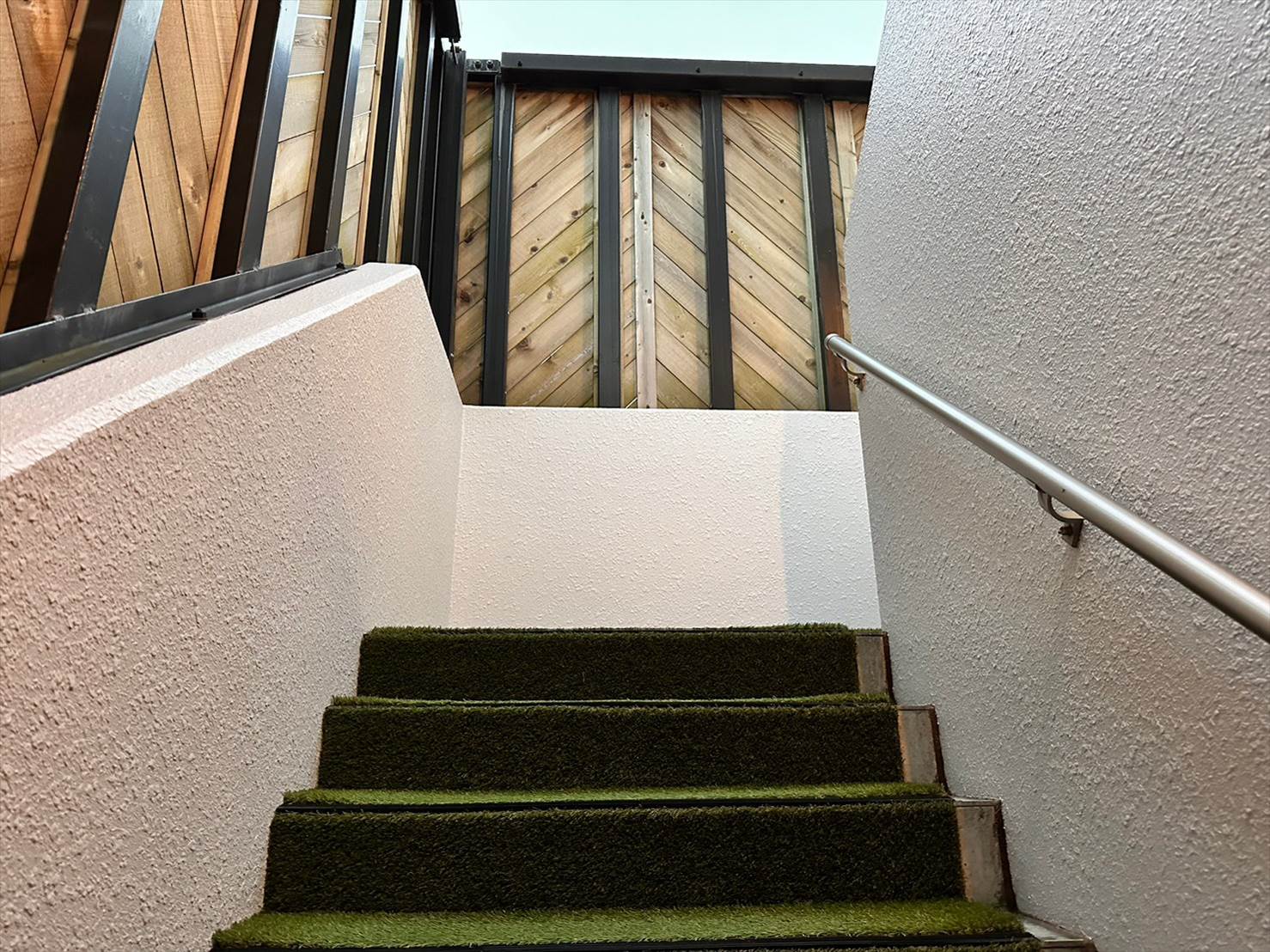 ▲約1階分、階段を登っていきます。ちゃんと階段にはマットが引かれています。