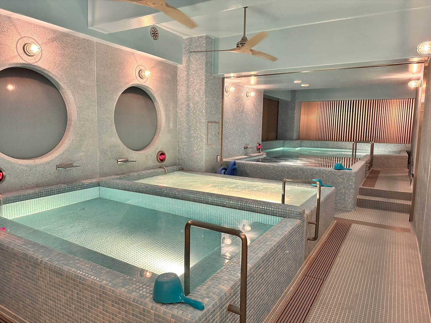 ▲スパ内に更衣室は用意されていないため、客室から水着を着込み、上からバスローブを羽織って移動する形になります。