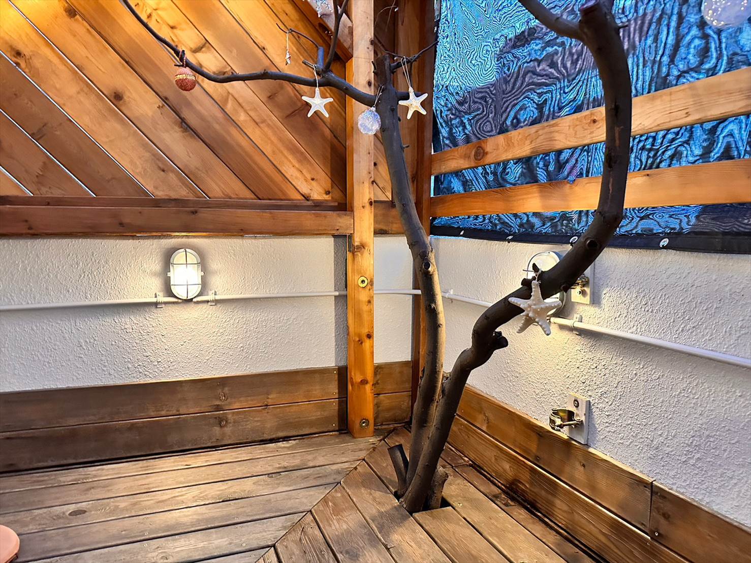 ▲ちょっとおしゃれなテントサイト?のような雰囲気。ちょうどクリスマスが近いタイミングだったからか、周囲の雰囲気を壊さない程度の飾り付けが施されたツリーが用意されていました。