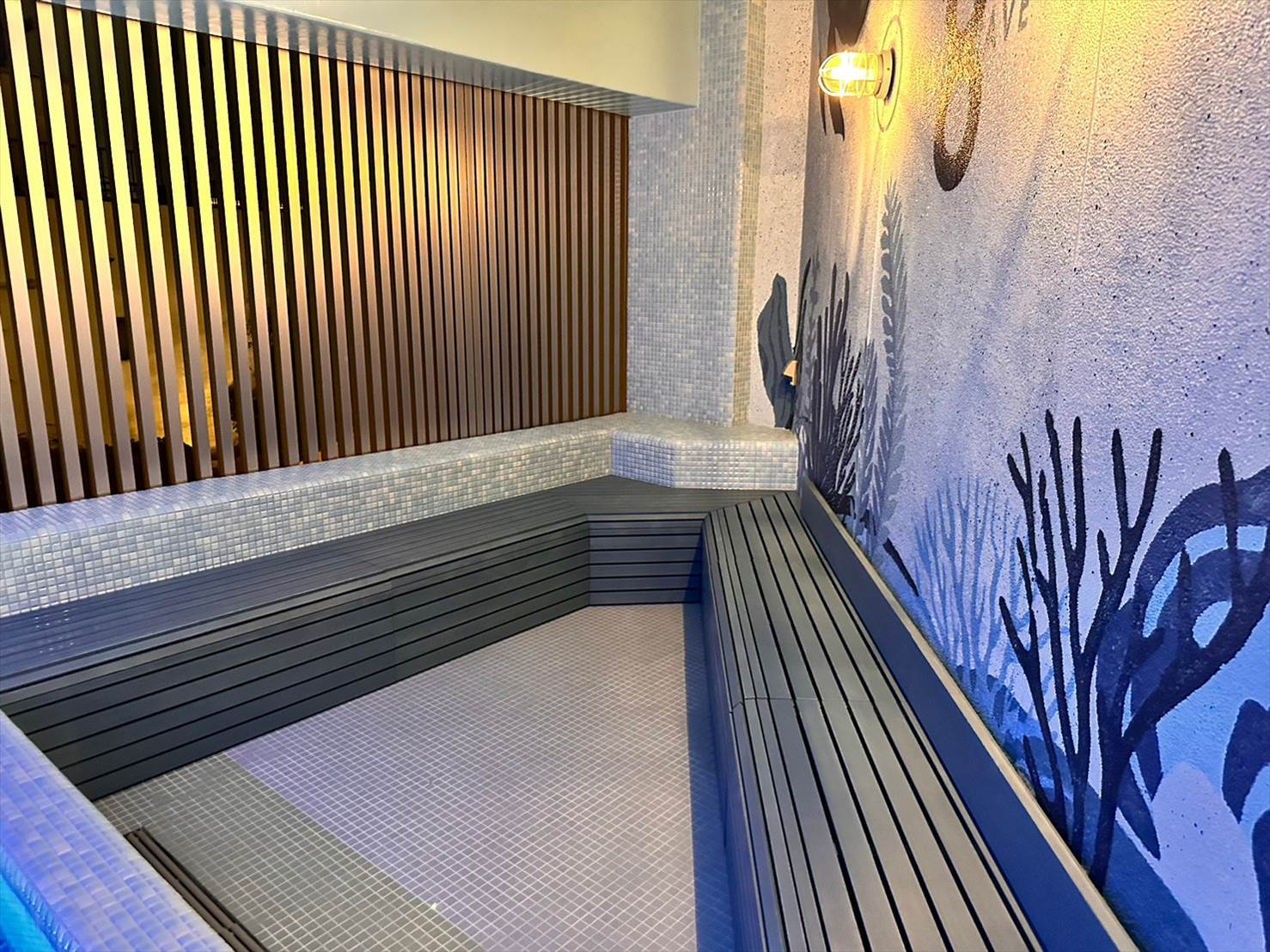 エイトホテル湘南藤沢2階に新設された「8 WATER CAVE」は、水着を着用して男女一緒に楽しめるスパ&サウナ。