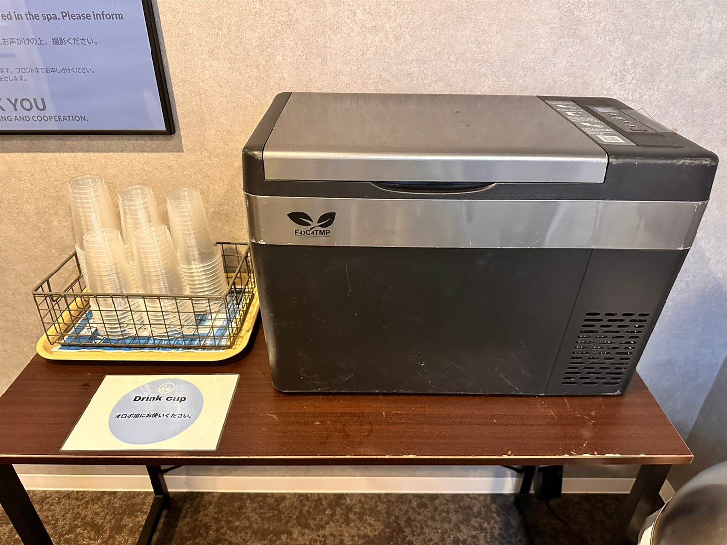 ▲入口入ってすぐのところには、ドリンクカップと氷が用意されていました。「オロポ用にお使いください」との表記もあり、早くもサウナーに寄り添っている感じがします。