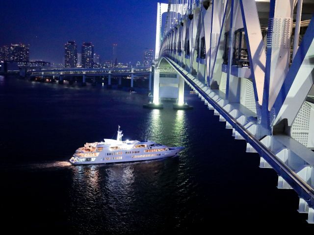 浜松町駅から徒歩12分の日の出埠頭から、東京湾をめぐるレストラン船。