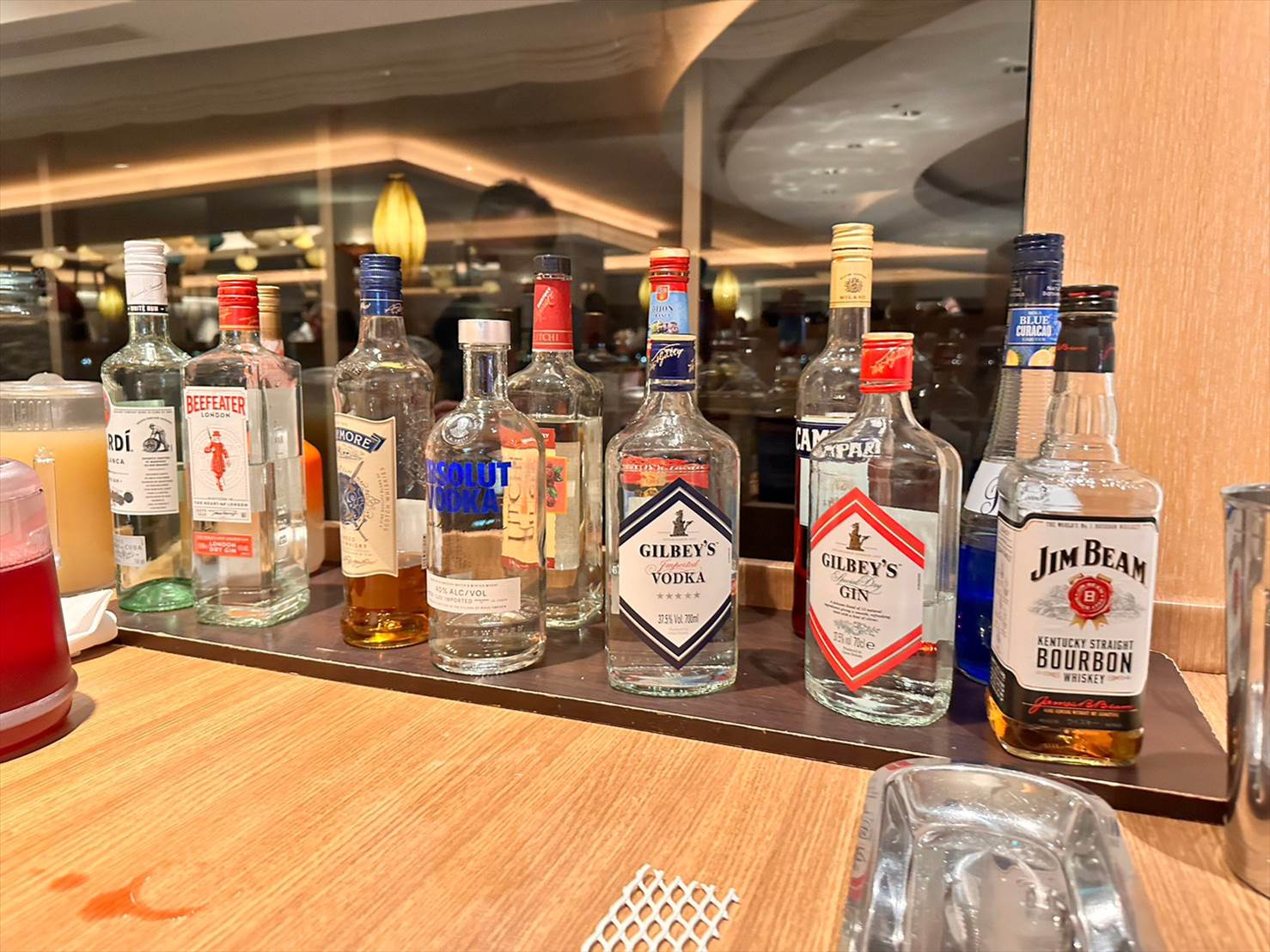 ▲リキュール類はご覧のようにずらりと並んでいます。ウォッカとジンがそれぞれ2種類ずつ並んでいたのが嬉しいポイント。