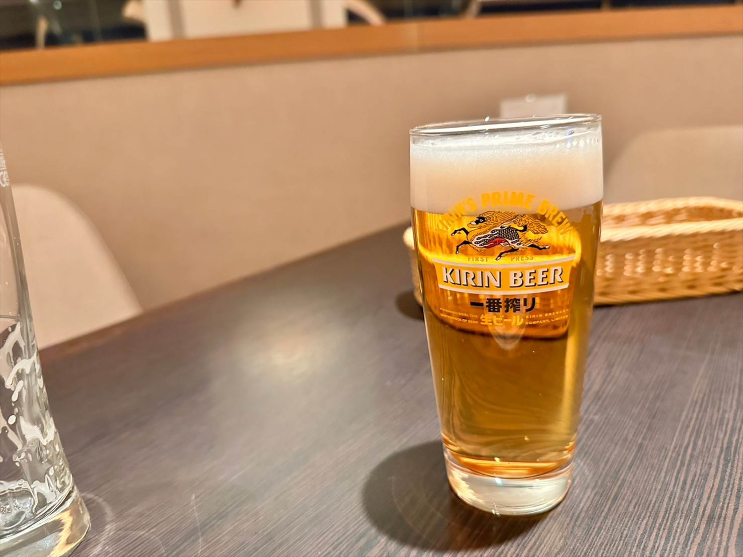 ▲ちゃんと一番搾りもいただきました。ハイネケンのさっぱりした味わいも好きですが、やはり日本の苦い重いこの味わいはたまらないですね…。