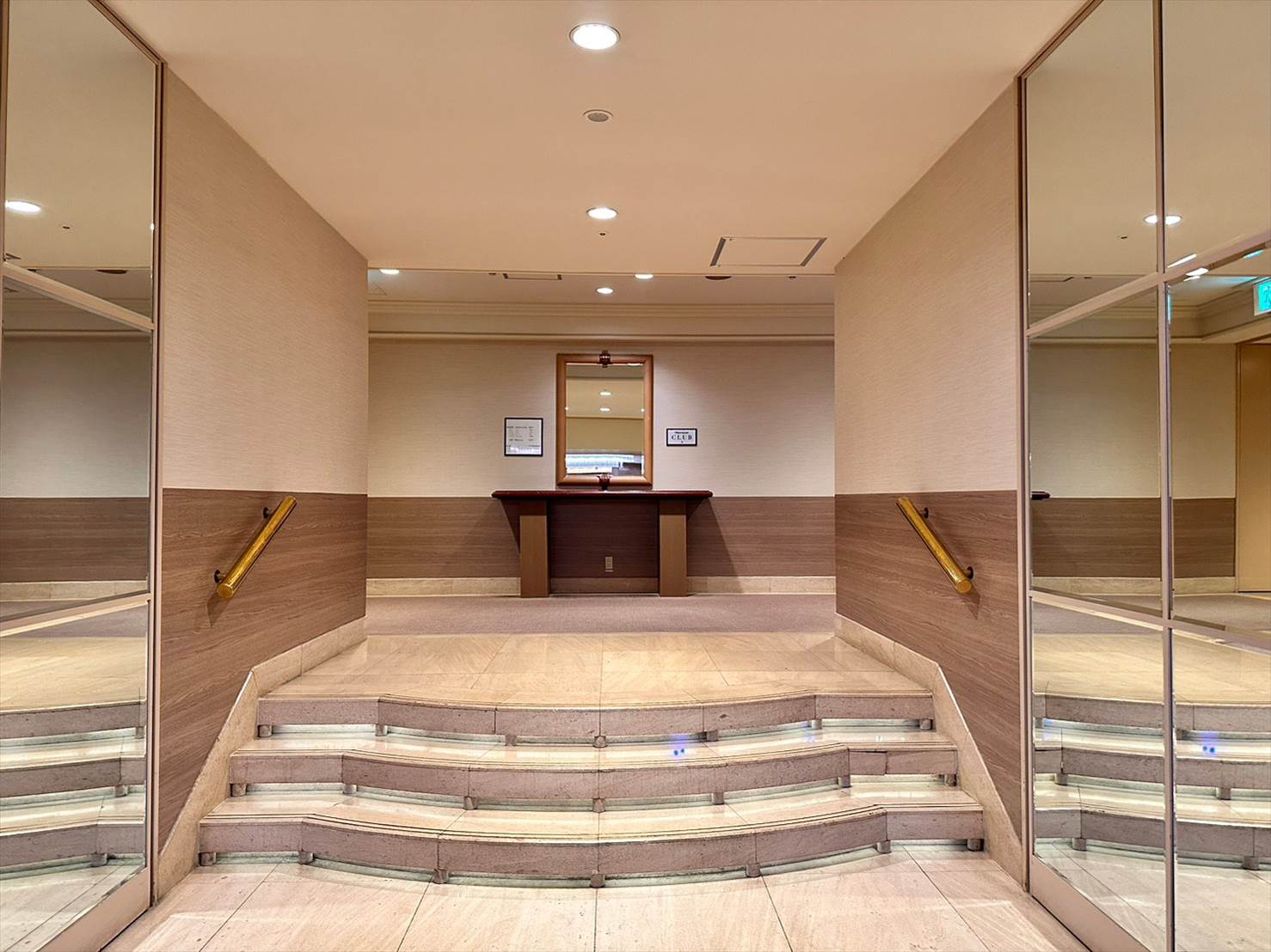 ▲ラウンジ入り口に近い側のエレベーターを利用するとこんな感じの階段に迎え入れられるスタイルです。