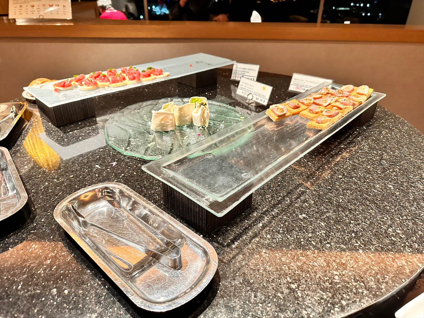 この時間帯はラウンジ内にフードがじゃんじゃん並び、アルコール含むドリンクもズラッと並び、ブッフェ形式でそれらを楽しめちゃうというもの。