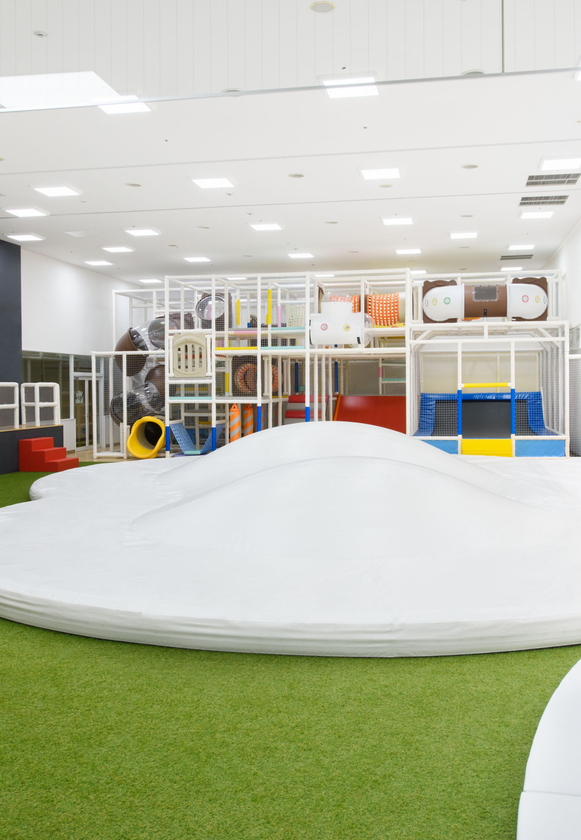 ボルダリングできるエリアが壁一面にあったり、ジャンプが楽しいふわふわが設置されていたりとよりアクティブさが増した印象です。