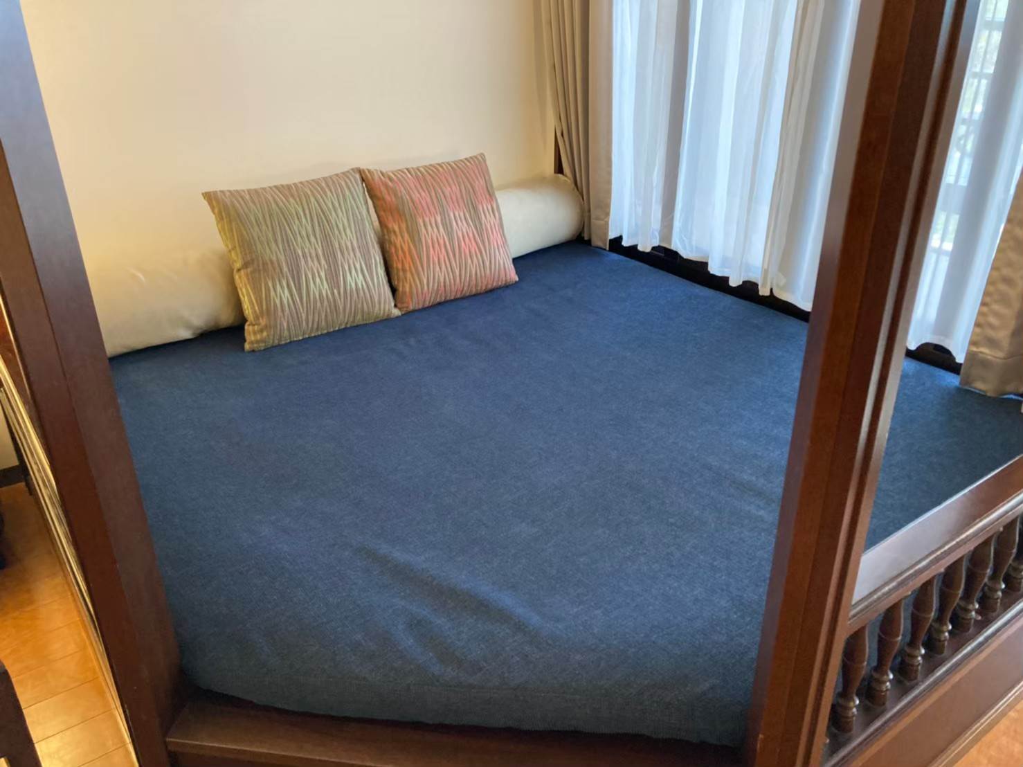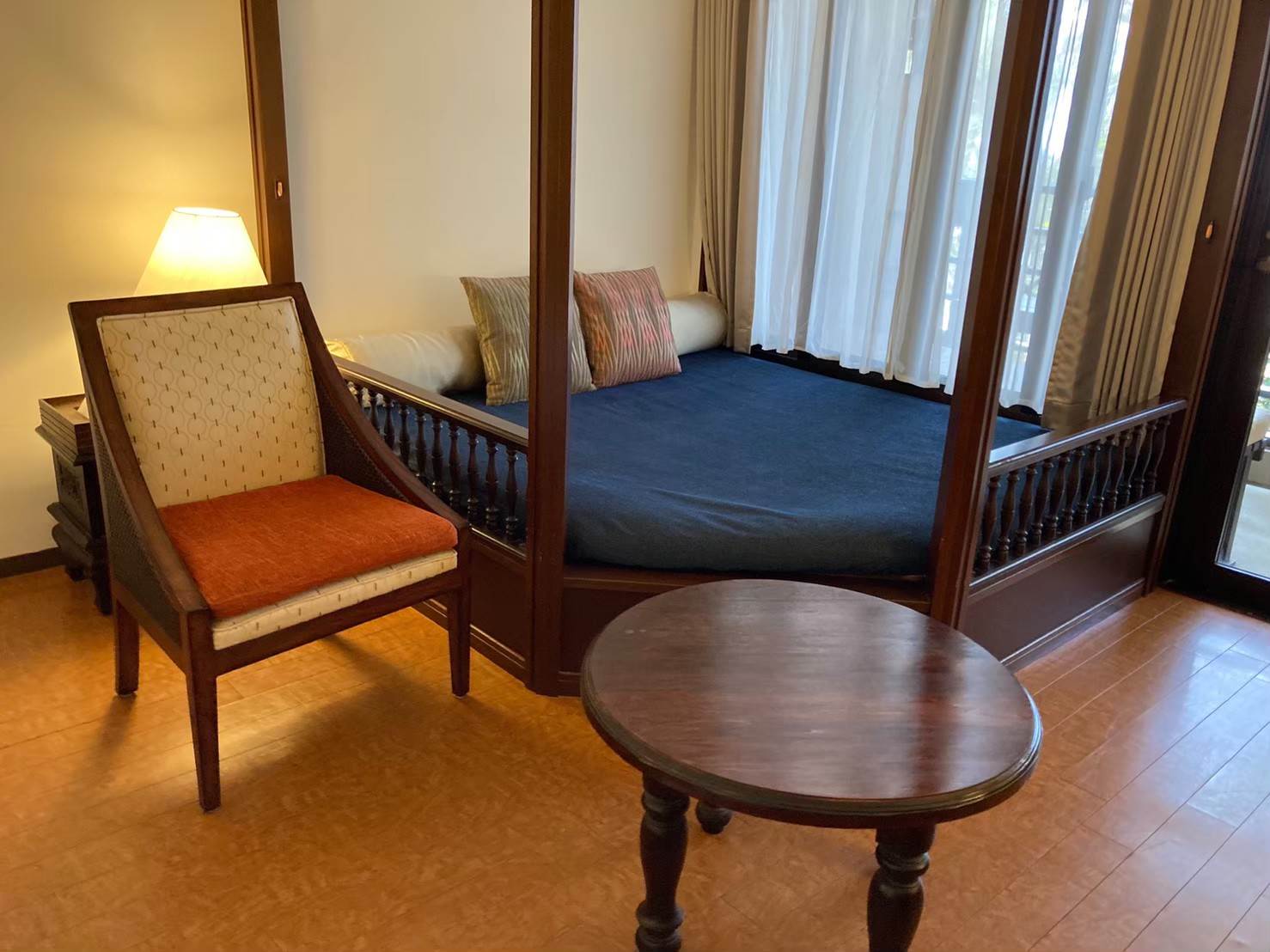 ▲こちらが窓側のデイベッド。ツインのメインのベッドと比べるとマットレスが固めですが、個人的にはこの雰囲気が気に入りました~!