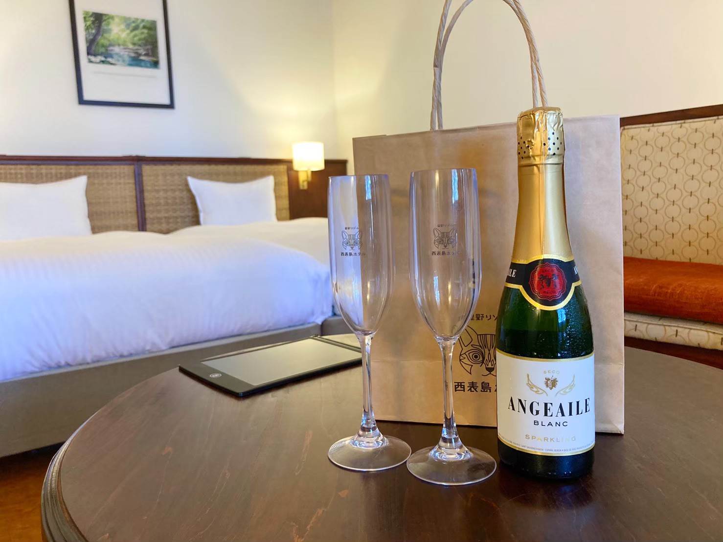 そのことをチェックイン時のアンケートで答えたところ、ホテルからプレゼントとしてスパークリングワインをいただいちゃいました!