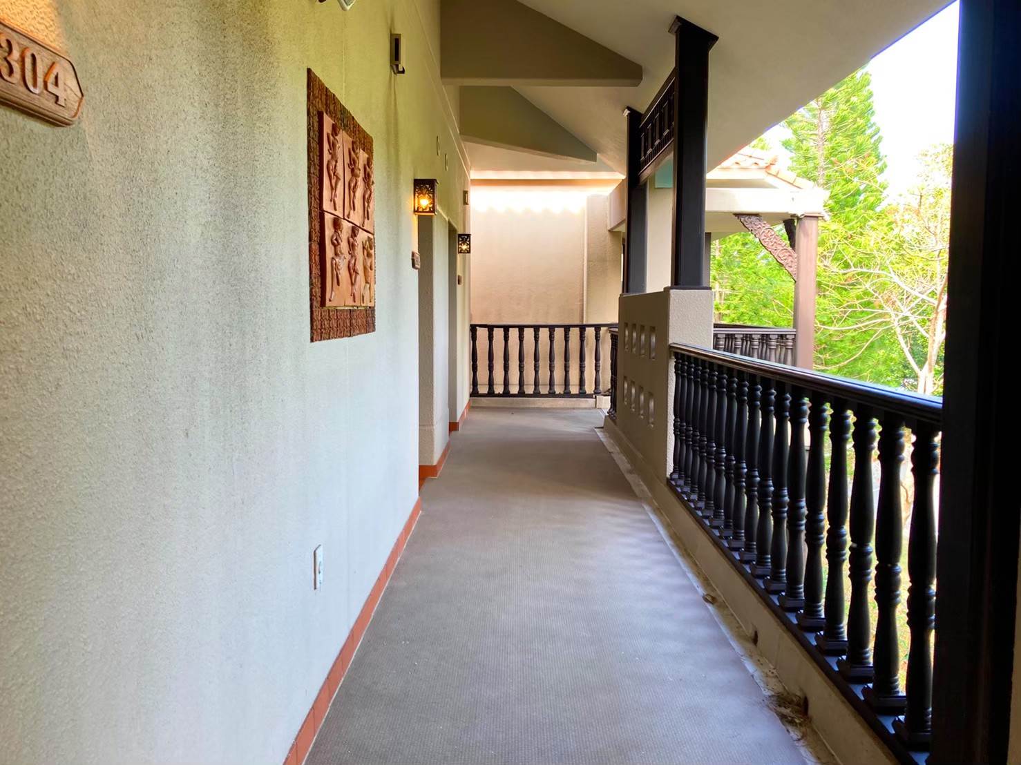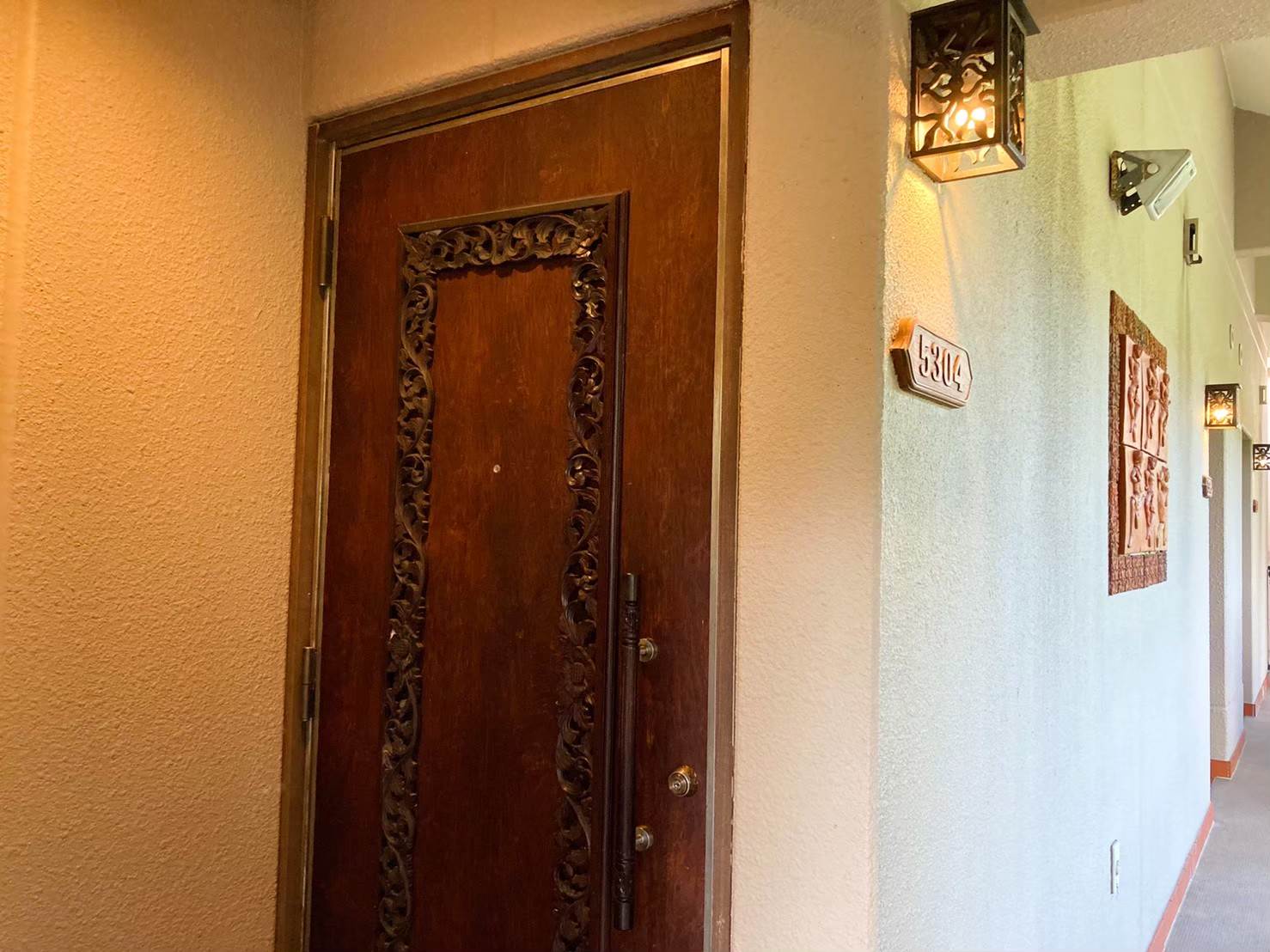 ▲客室に到着しました。客室ドアはこんな感じで南国感があります。ちょっとバリっぽいかもですね。