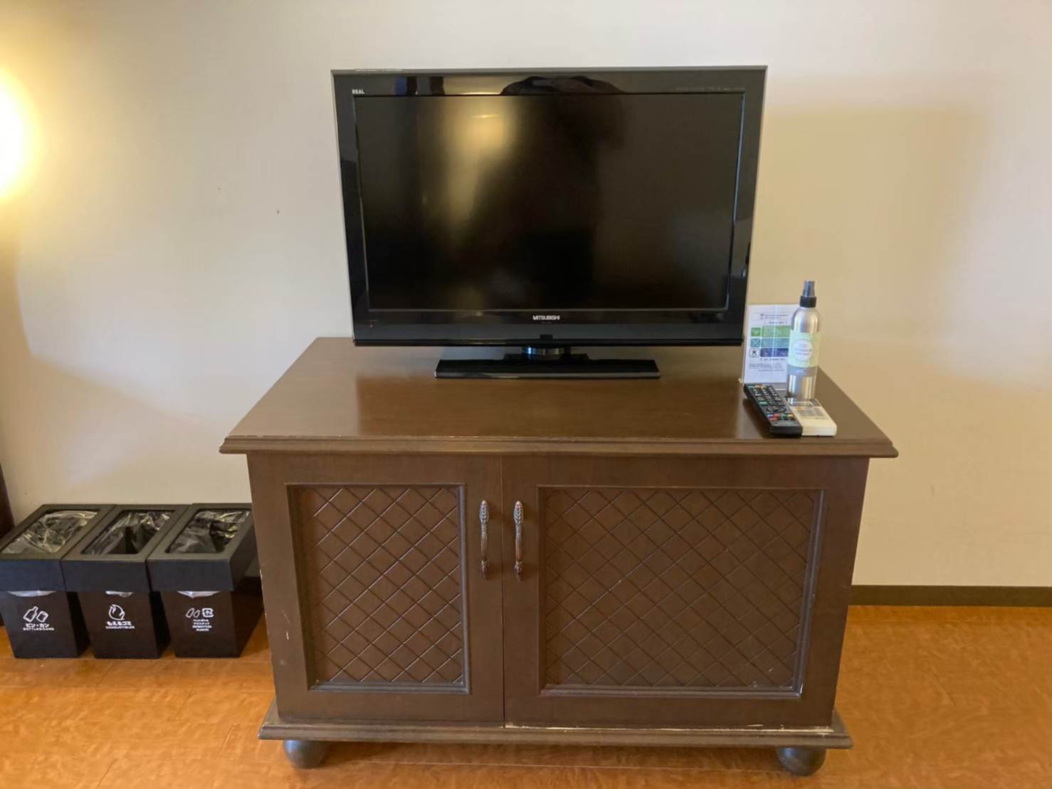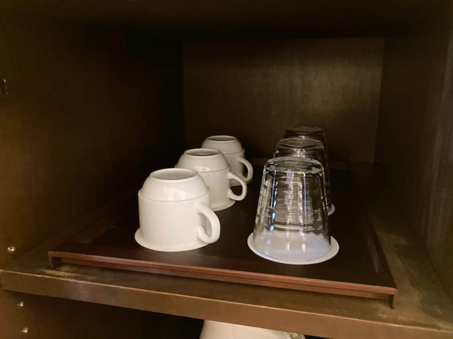 ドリンク系の備品はテレビ下の戸棚に用意されており、ホット用のマグカップ・アイス用のグラスが完備されていました。