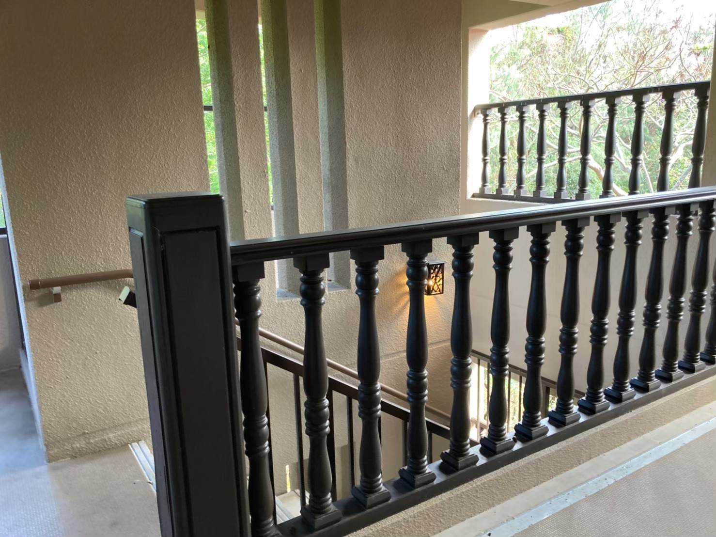 ▲廊下の外に目をやると、そこはもう辺り一帯鬱蒼としたジャングル。