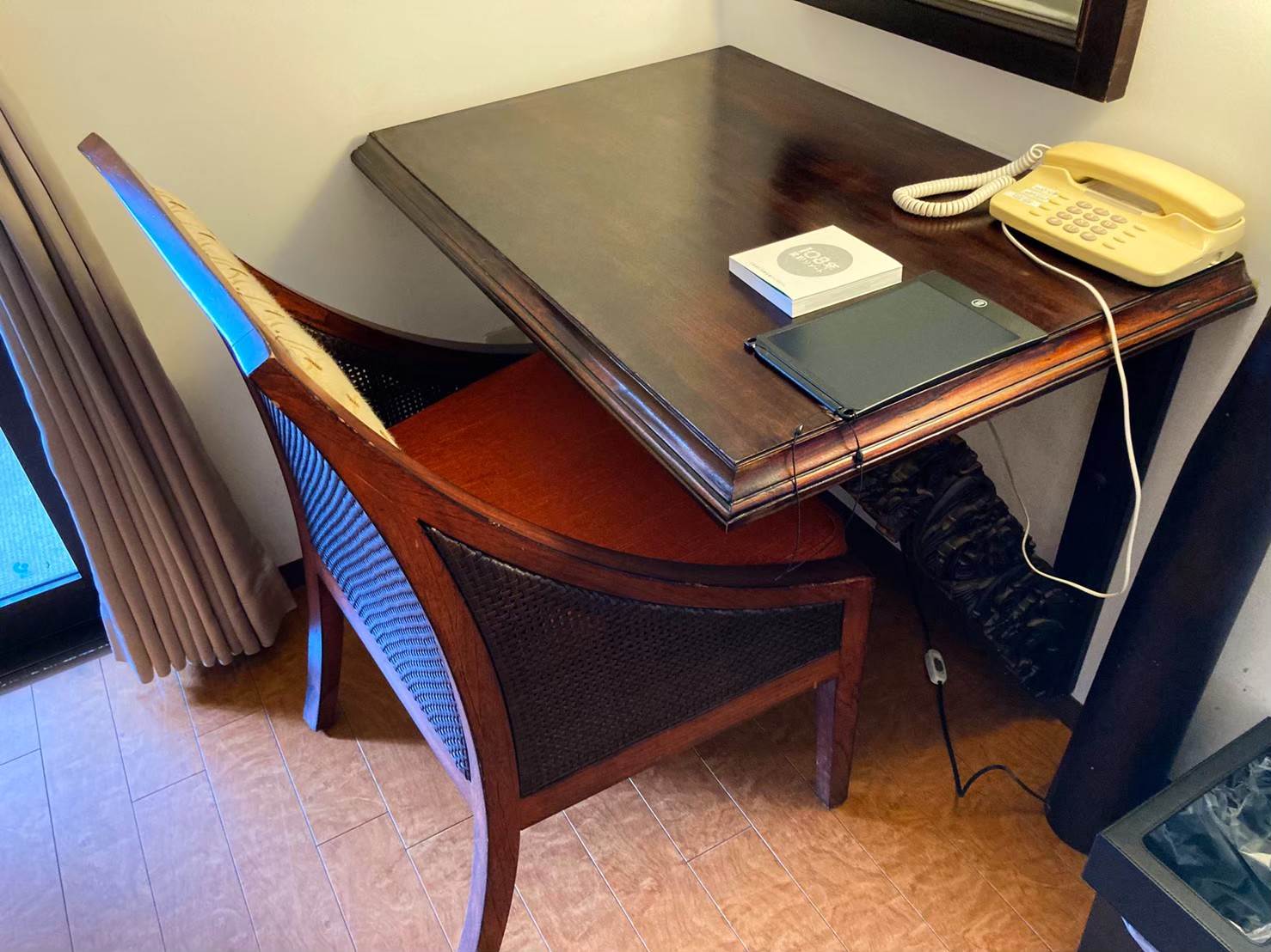 ちょうどこのデスクの目の前が鏡になっていたので、女性グループで宿泊する場合は洗面台と分かれてここで支度を整えることもできますね。