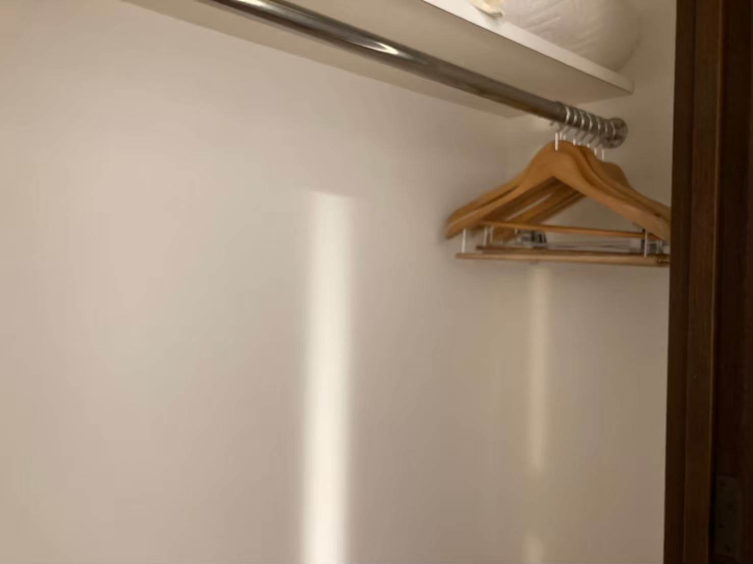 ▲ピンボケしていますが、廊下部分にあるクローゼットの中にはハンガーが多めに用意されています。