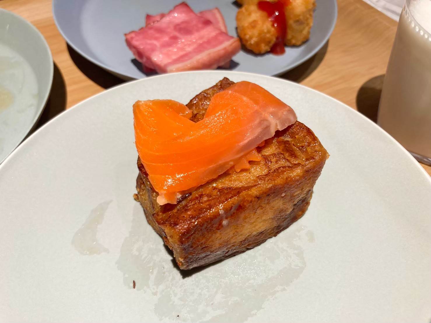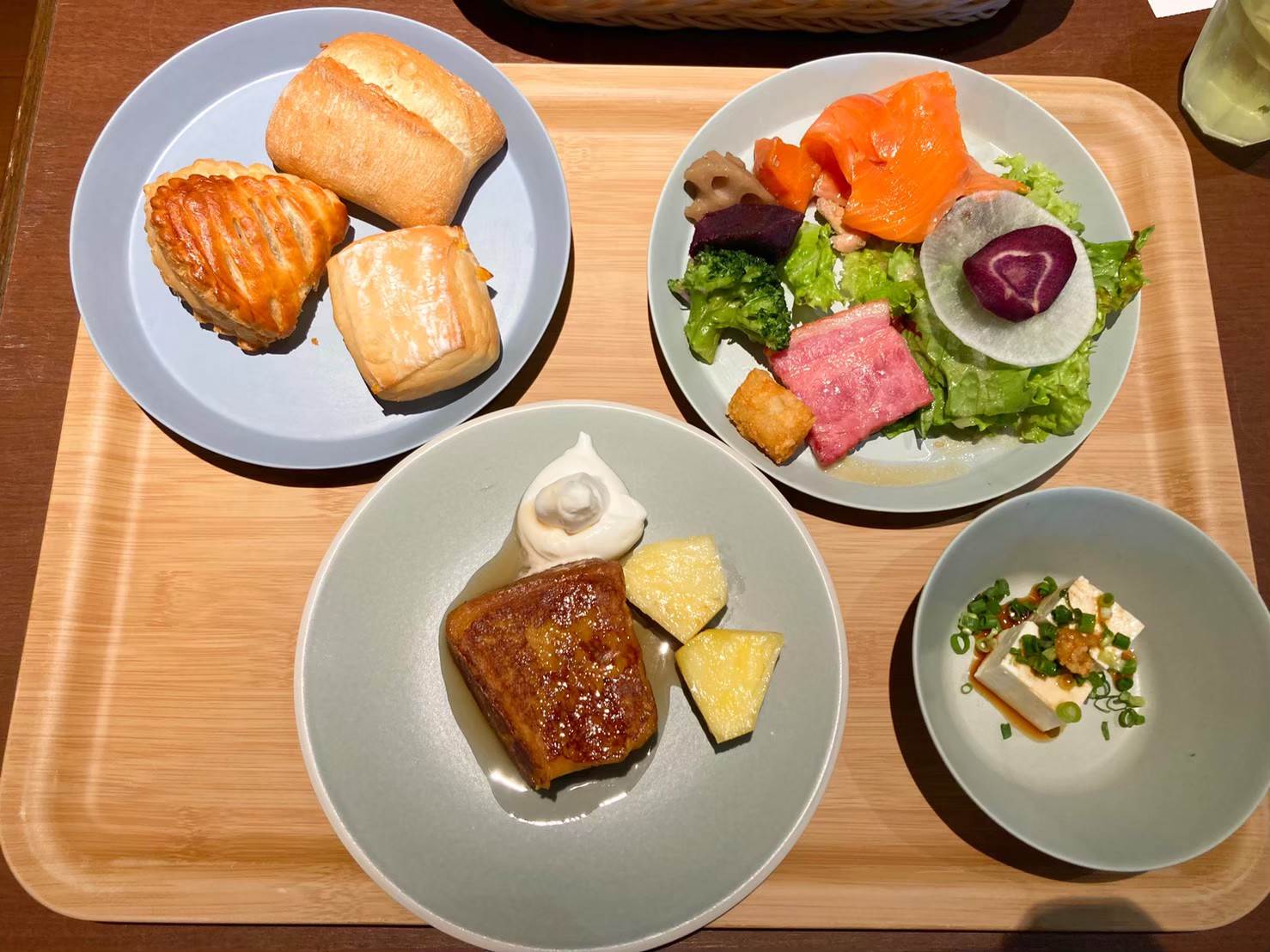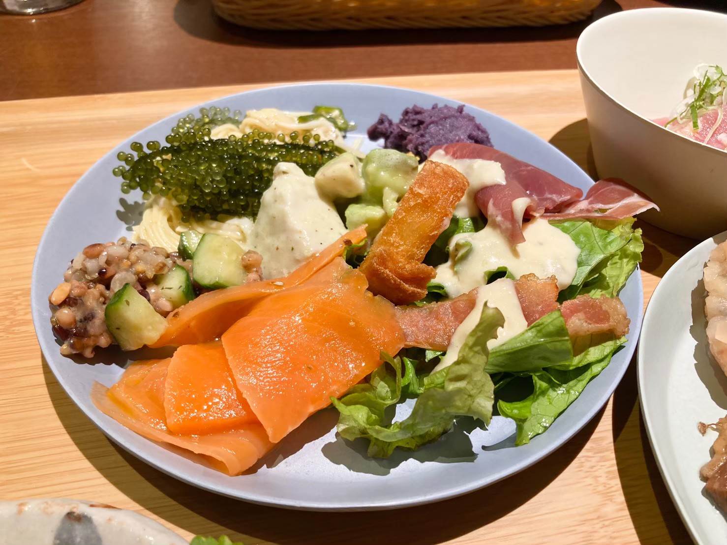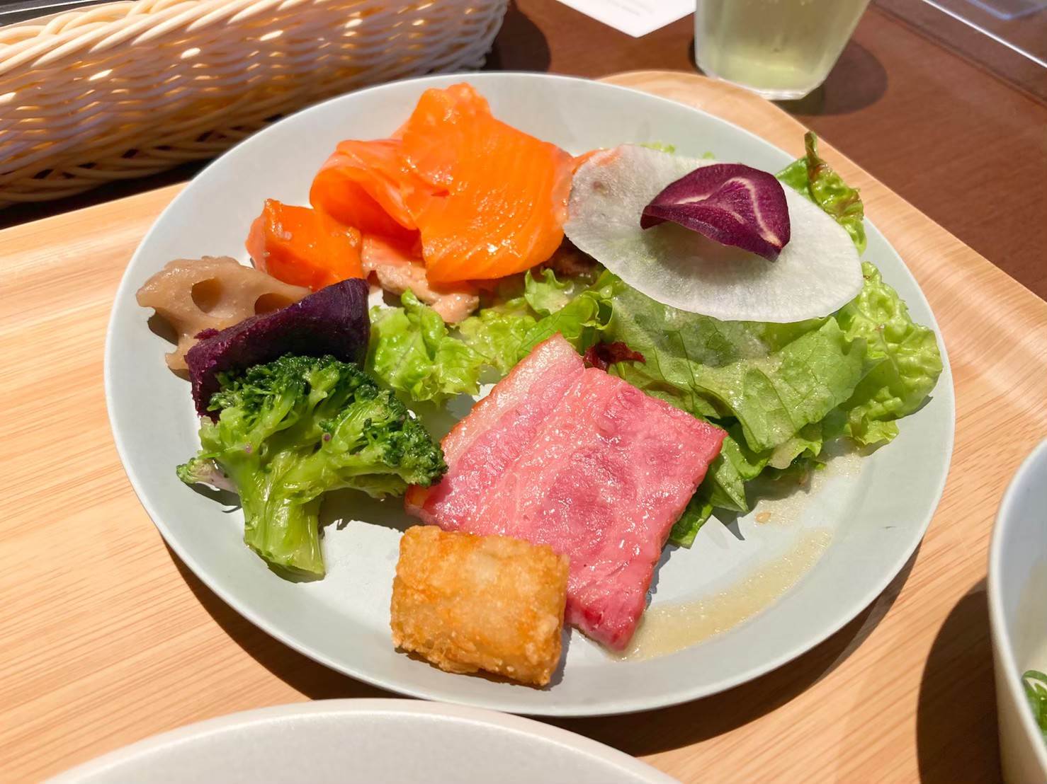 ▲サラダプレート。夕食時同様スモークサーモンの用意があり、朝からがっつりめにサラダをいただくことに!