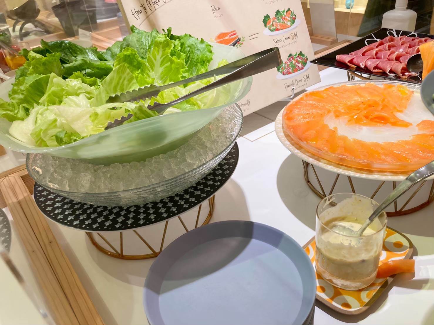 ▲個人的にはこちらの、スモークサーモンと生ハムを合わせていただくシーザーサラダが魅力的でした!
