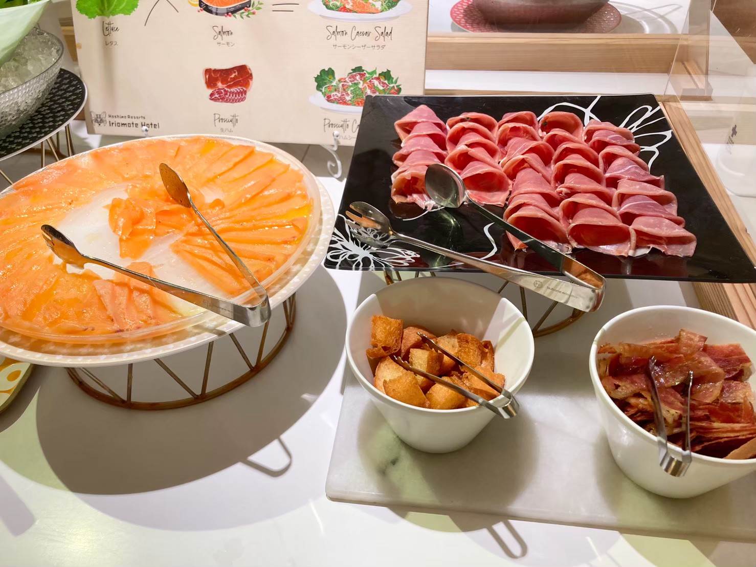 ▲生ハム、スモークサーモンにクルトン、カリカリベーコンのトッピングができます。
