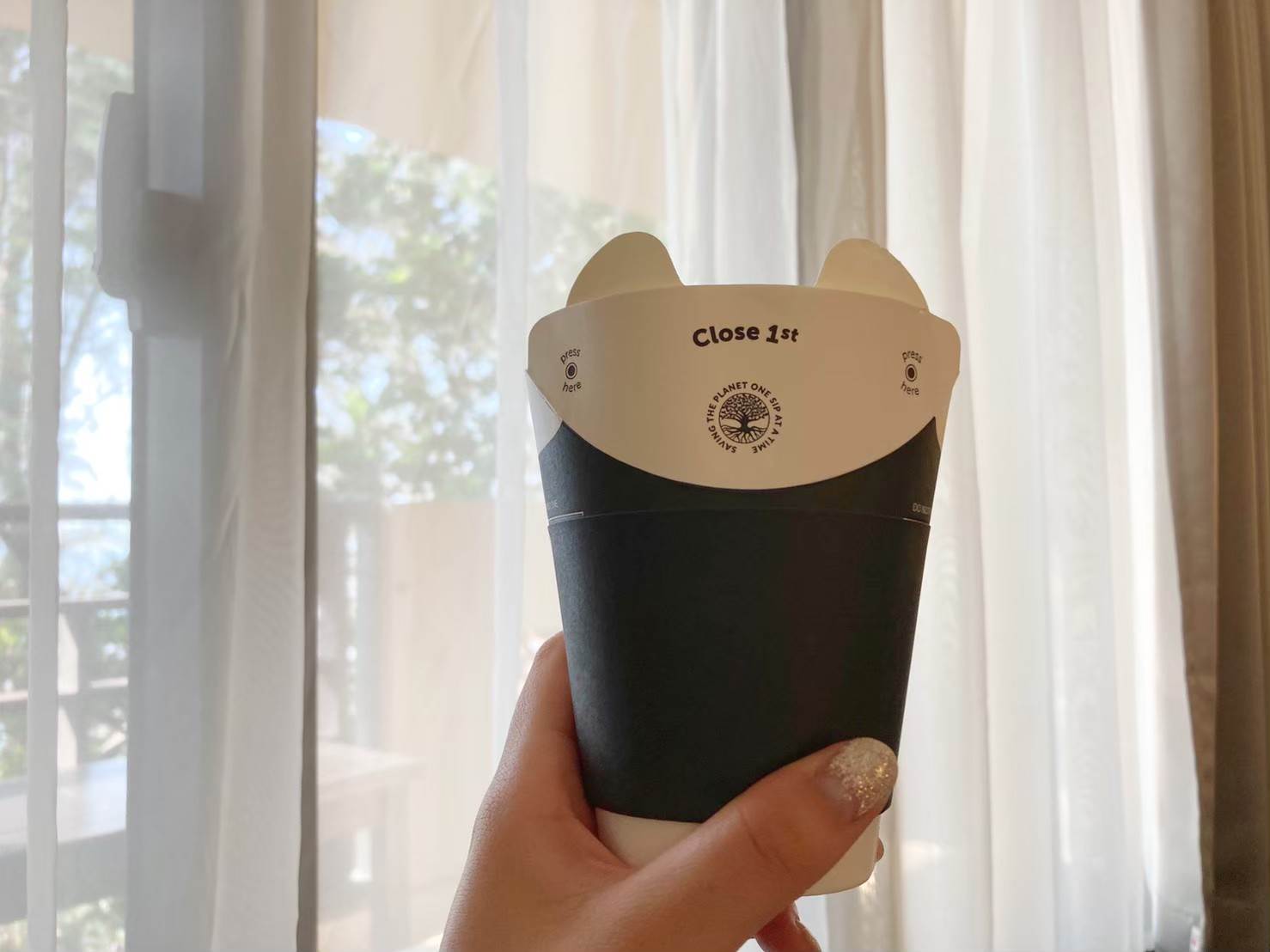 ▲”バタフライカップ”という、蓋がいらないタイプの珍しいカップで客室に持ち帰ってゆっくり楽しむことも◎