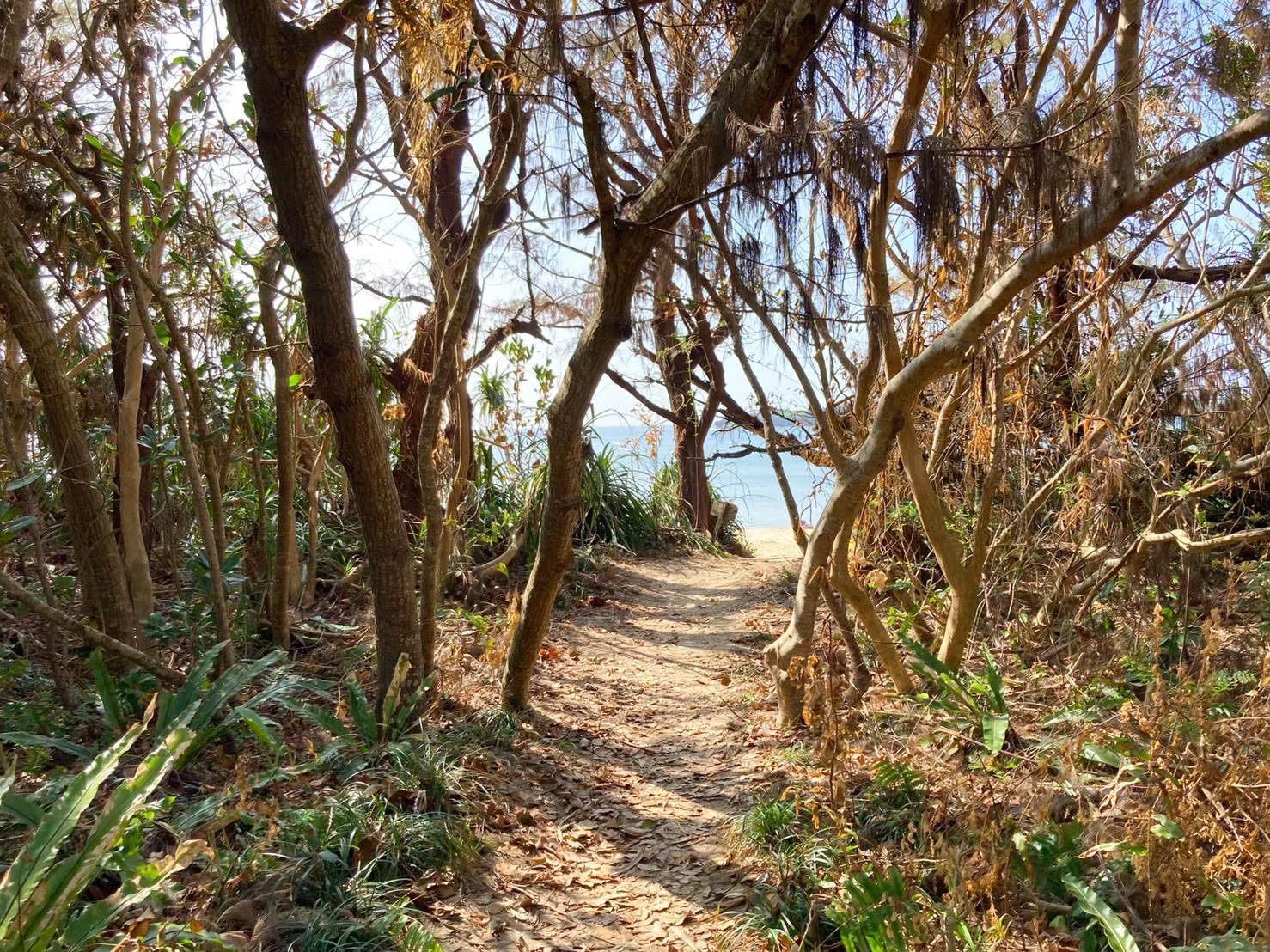 ビーチへはプールを抜けた先のこんな小道を進んでいくとすぐたどり着けます。