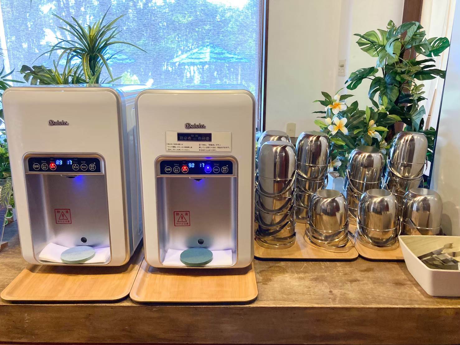 ▲お水とお湯。星野リゾート西表島ホテルでは客室に冷水の用意はありませんが、チェックイン時にひとりひとつタンブラーを貸し出しいただけます。