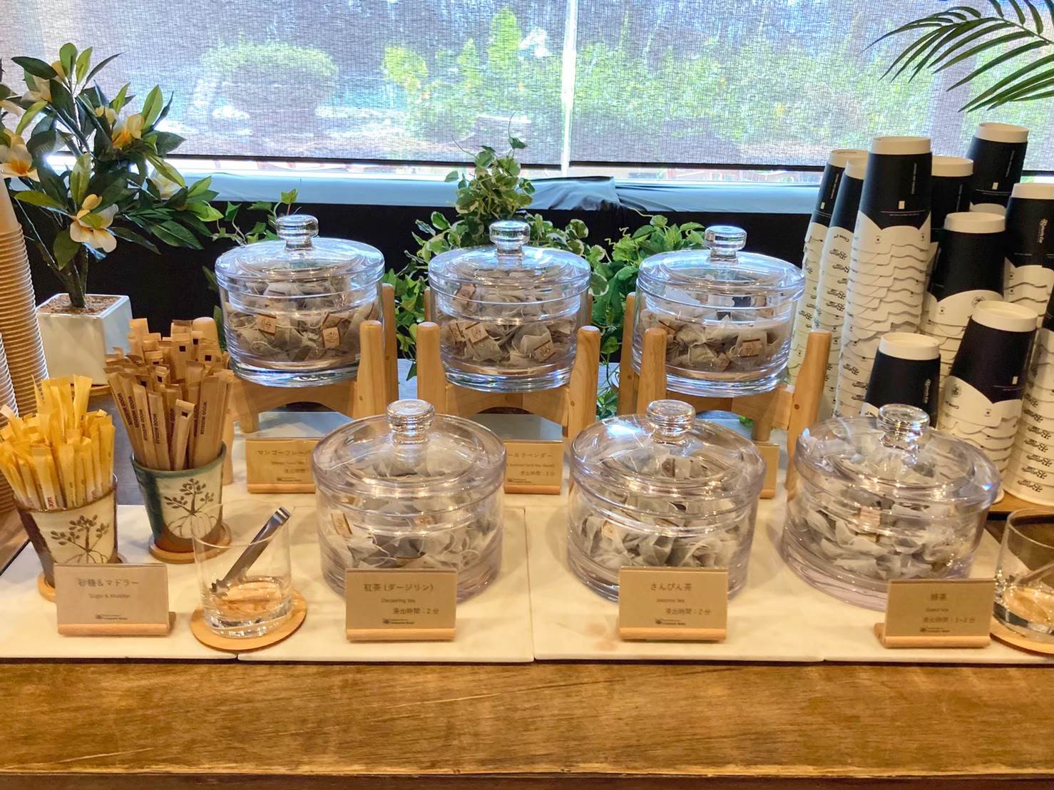 ▲ホットドリンクとして、紅茶・さんぴん茶・緑茶を初め各種茶葉の用意も。