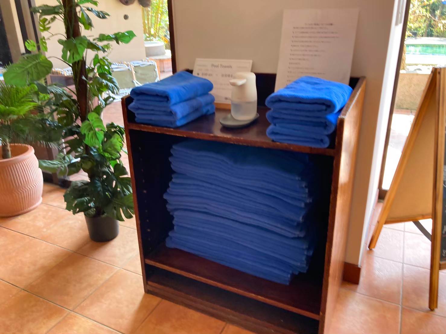▲タオルは備え付けの物があるため、プールを利用するときは客室タオルの持参は不要です。