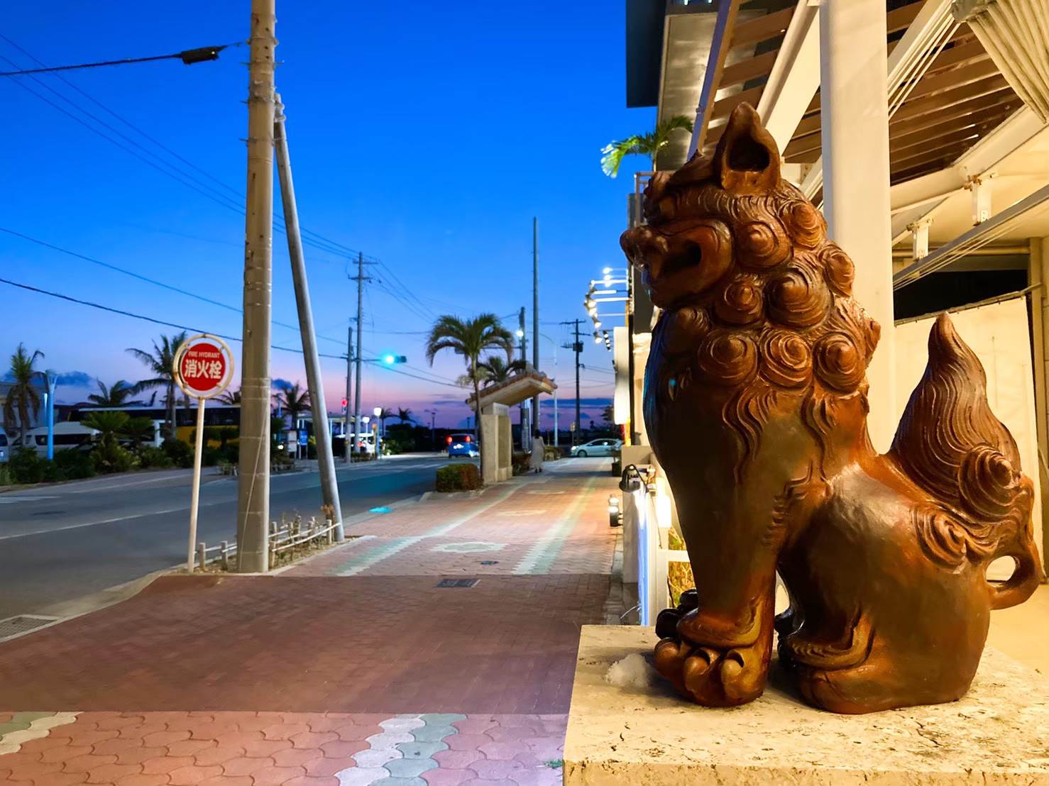 空のグラデーションとシーサーの姿がいい塩梅にマッチしていて素敵です。