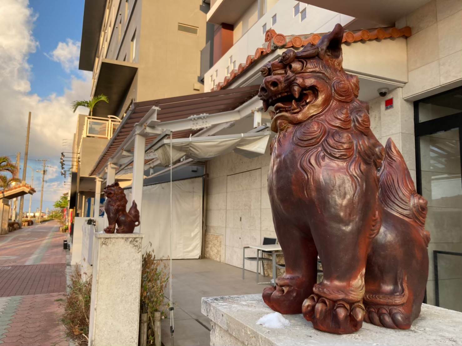 沖縄らしい、シーサーが出迎えてくれる出入り口です。