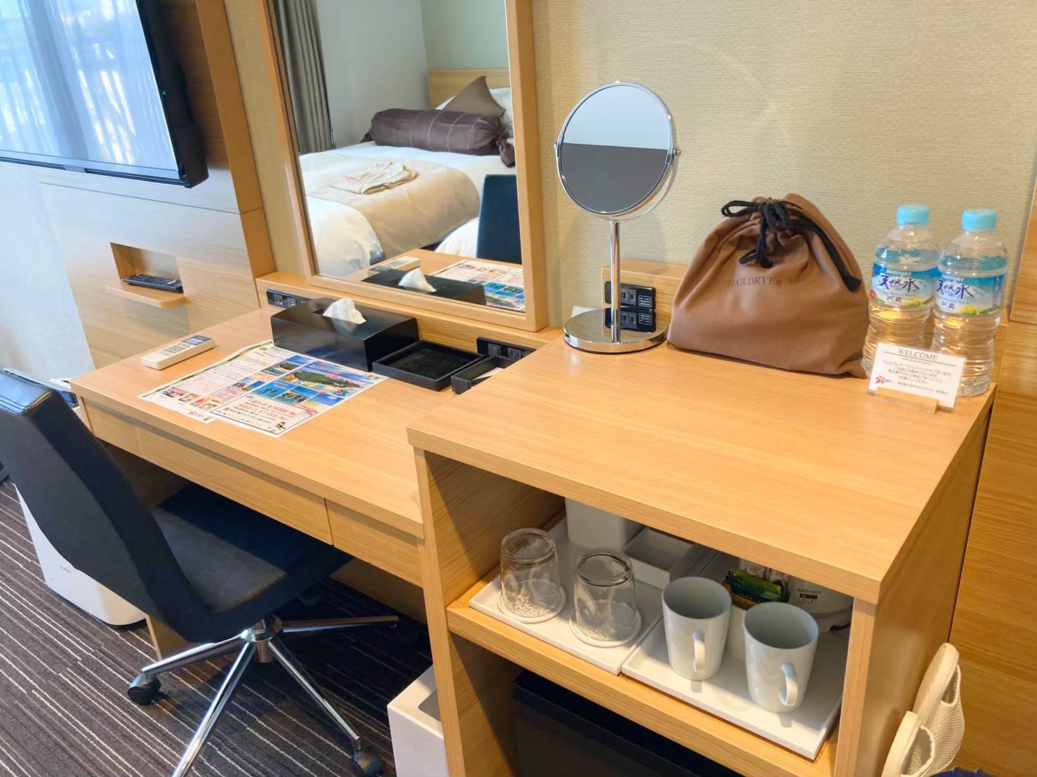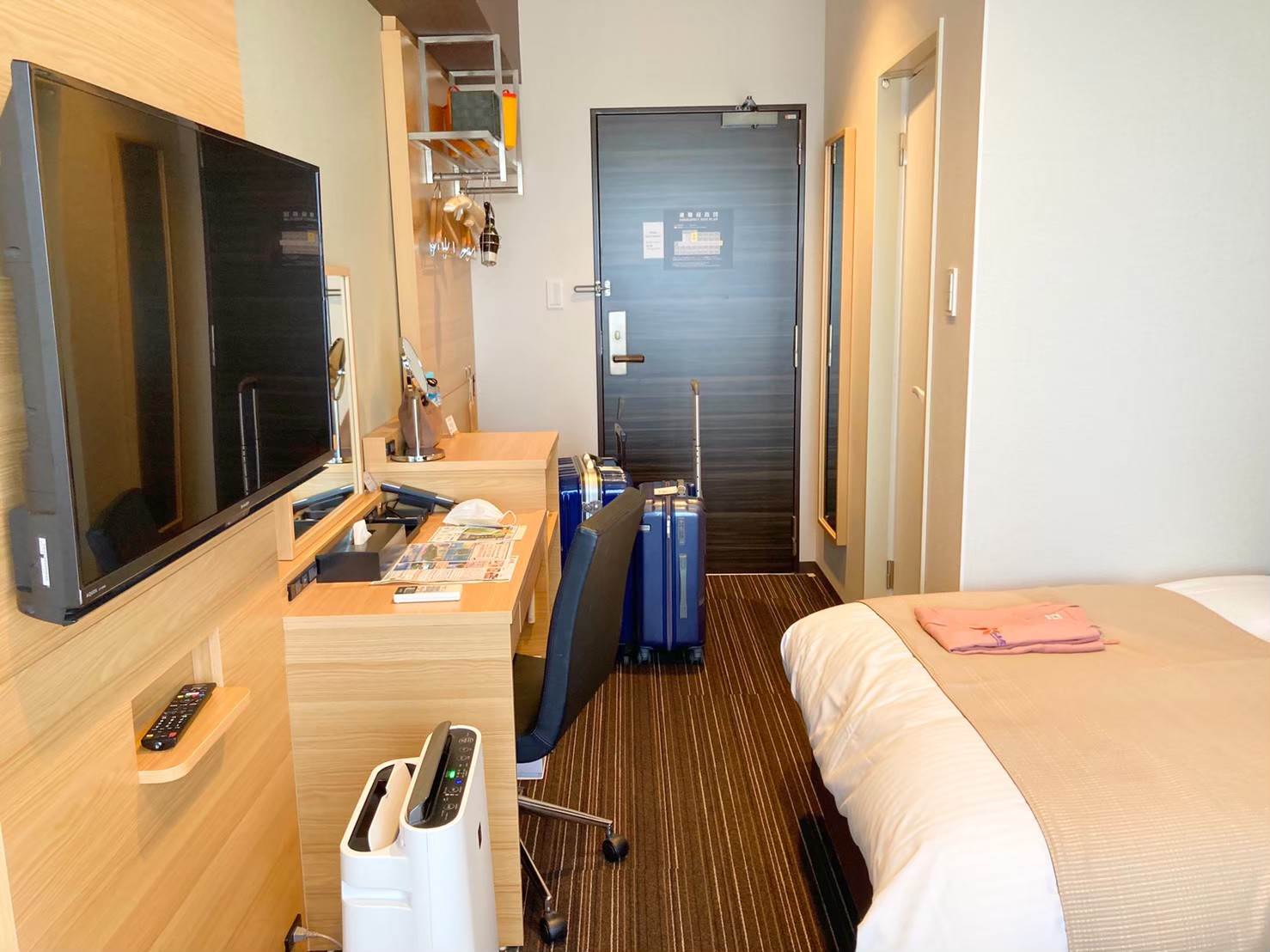 お部屋は全体的にはコンパクト。大きめのスーツケース2つ持ちの身としては、2つとも広げるのには若干苦労しました。