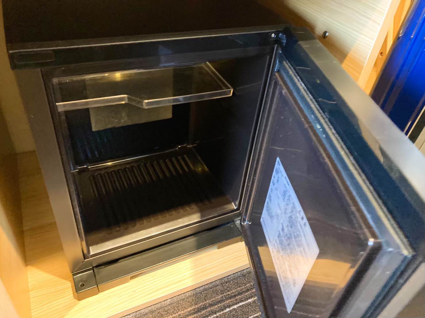 ▲冷蔵庫はコンパクトなタイプ。若干冷え方は弱いので、冷凍品は厳しいかもです。
