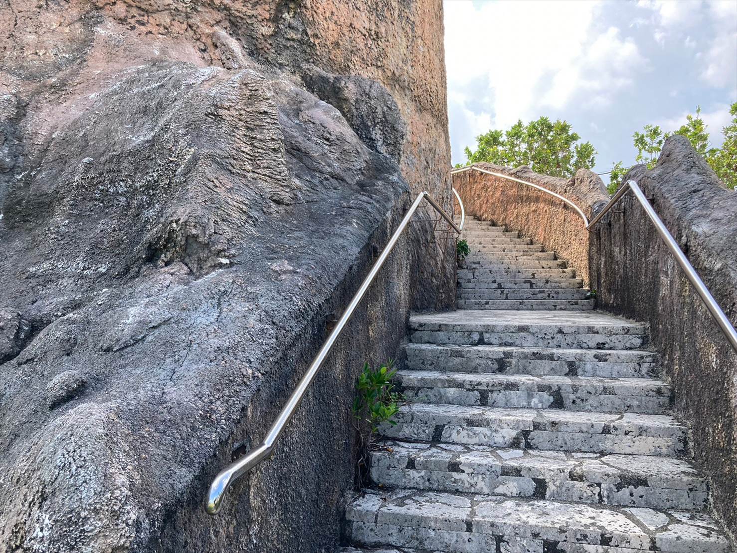 シンプルにぐるりと展望台の外周に階段が用意されている構造。きちんと整備されているので、安心して登れます◎