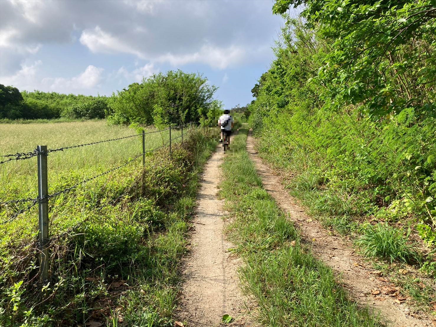 ▲そのまま引き続き自転車にとっては道なき道を進んでいくと、西の浜に続く通路が出てきます。