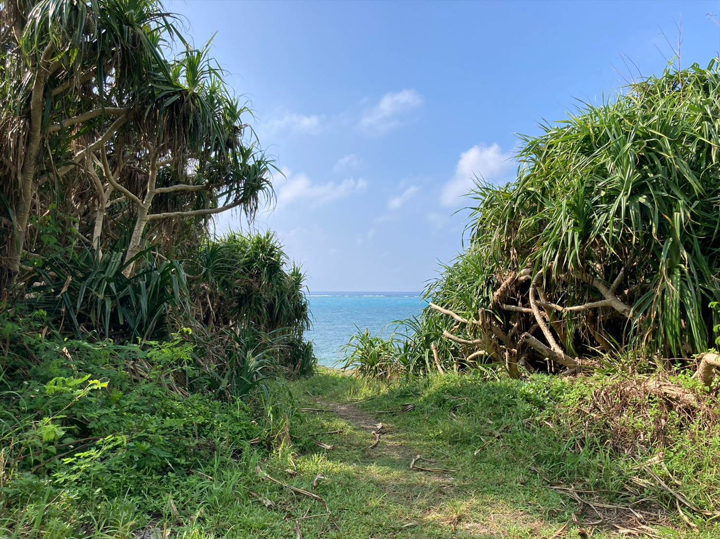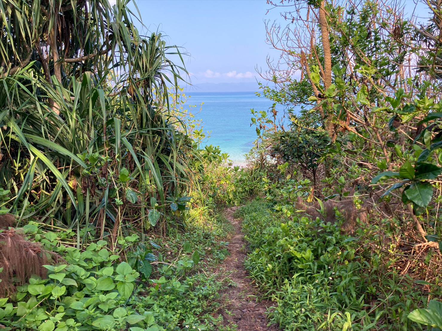 この小道も大概険しいですが、もうここまで来ると奥の浜が垣間見えていて、わくわくが止まらなかった…!