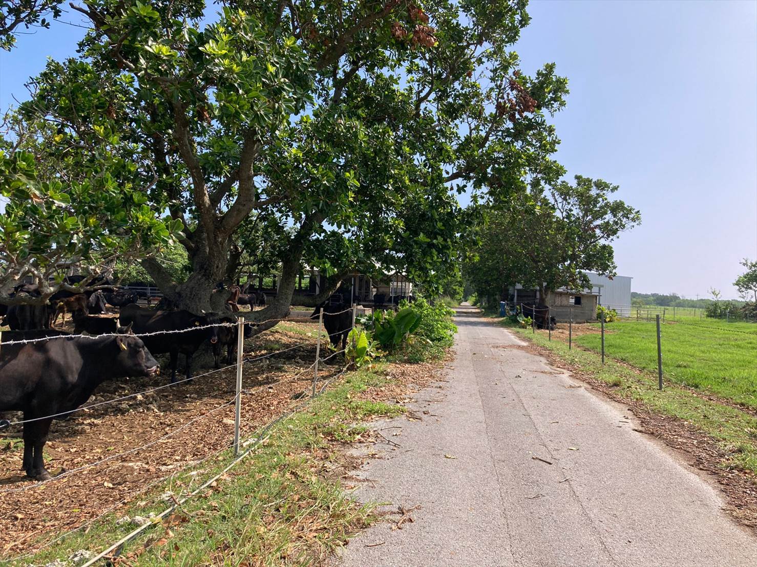 ▲次なる目的地へ向かいます。伊古桟橋に続く道はこんなふうに細くて、左右に牧場が広がる道がほとんど!