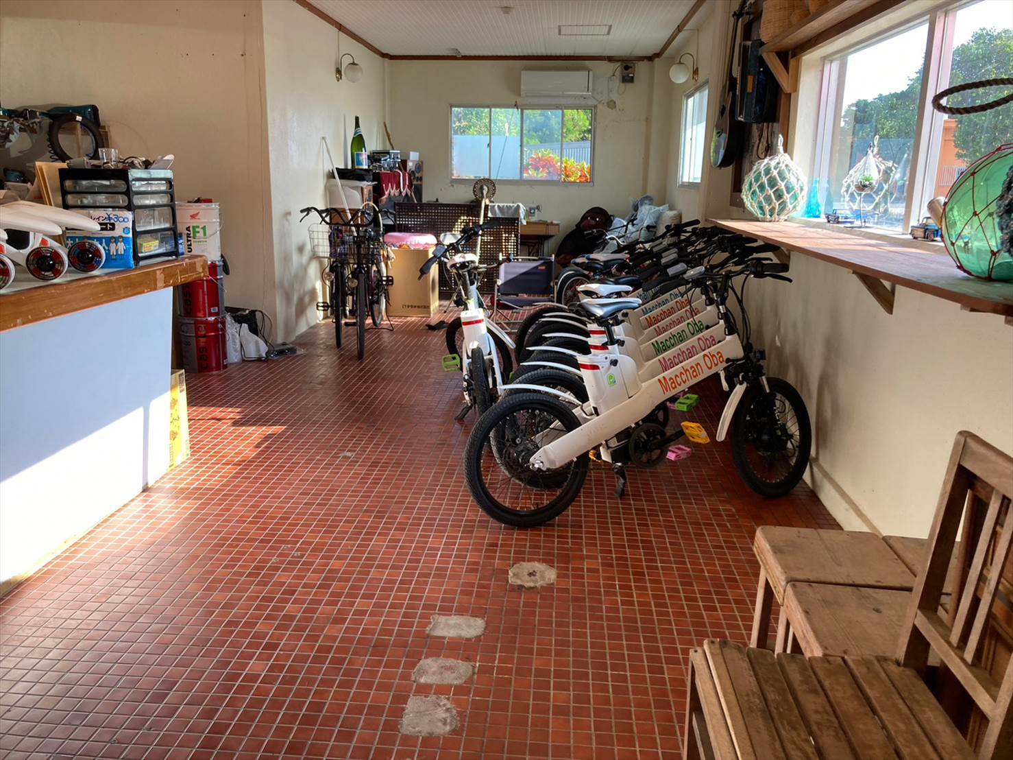 ▲レンタサイクルショップ「まっちゃんおばーのレンタサイクル」店舗内の様子。
