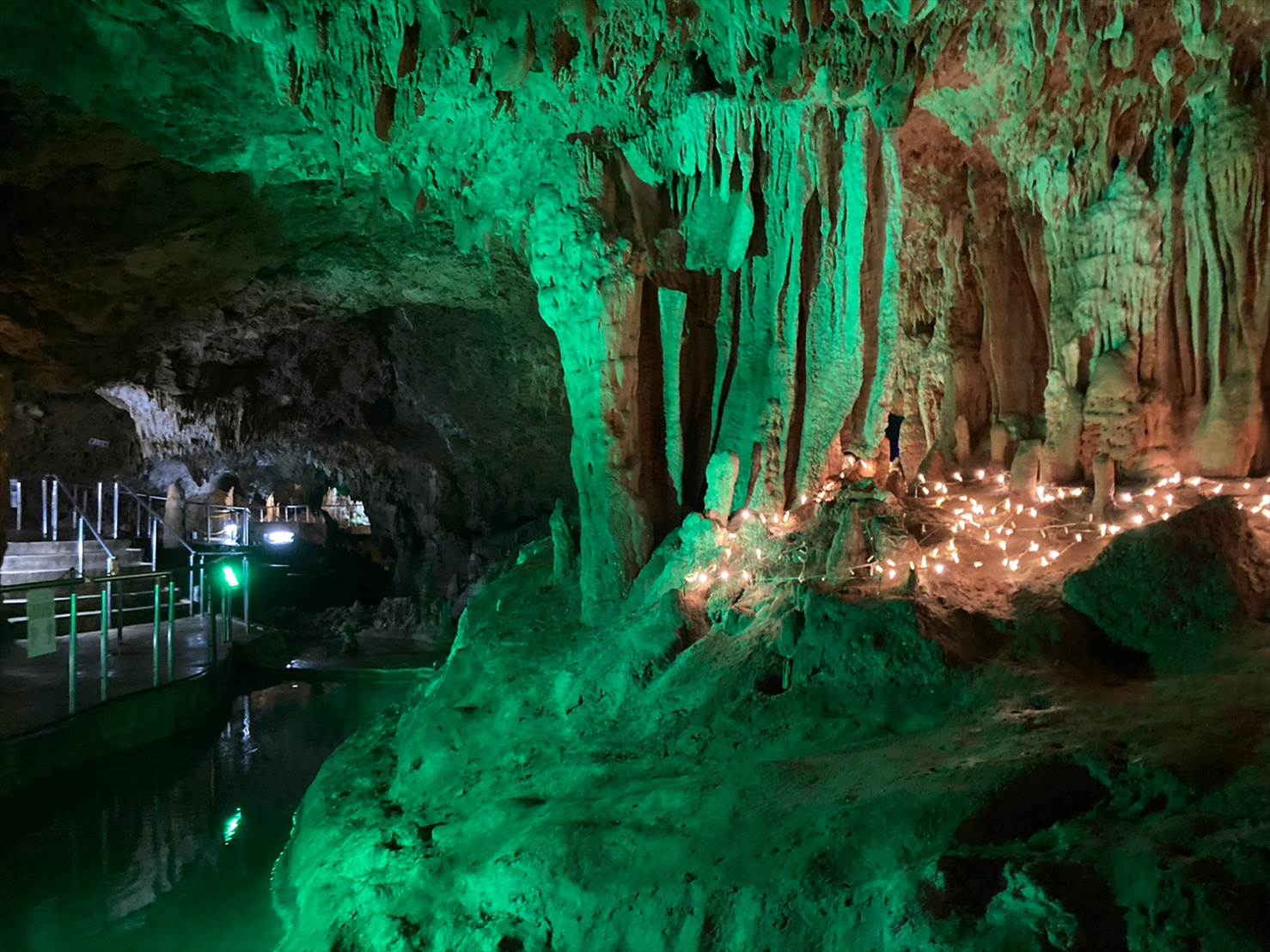 ▲私たちが訪れた日が良かったのか、鍾乳洞内部には私たち以外のお客さんがおらず、貸切状態で見学できたのが印象的。