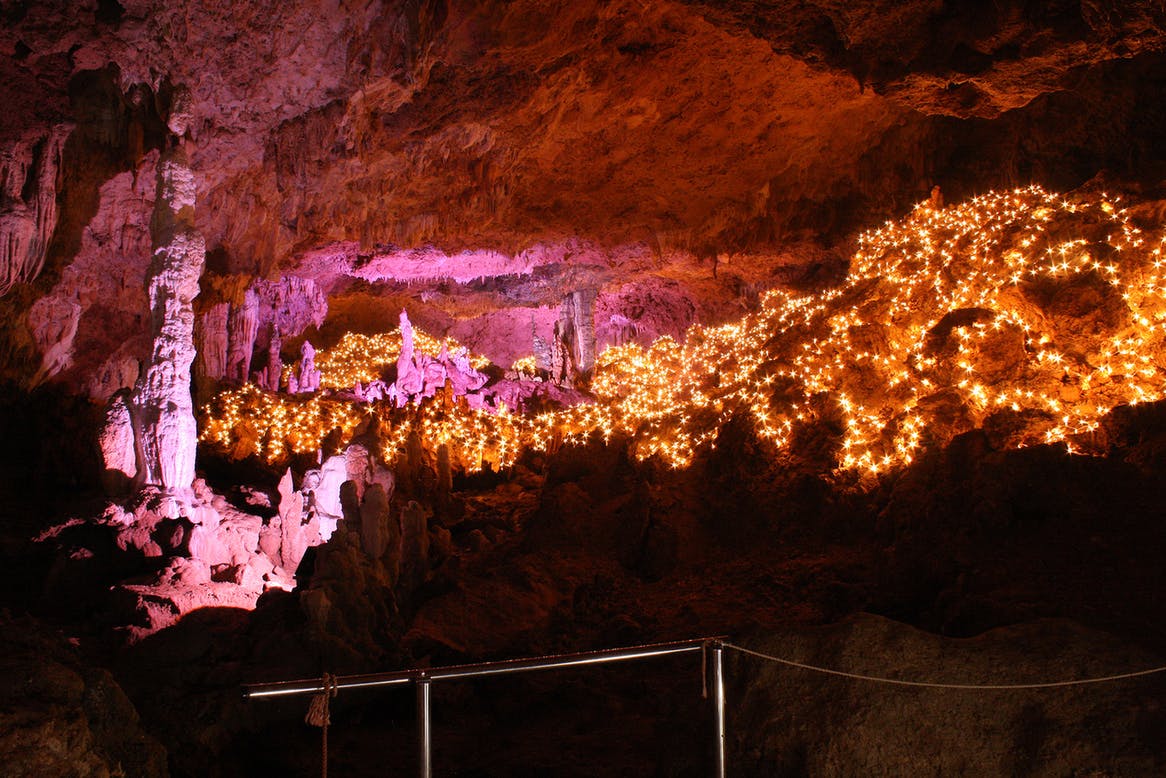 鍾乳洞にイルミネーション、という組み合わせがなんとも妙ですが、これはこれで面白かったですね。笑