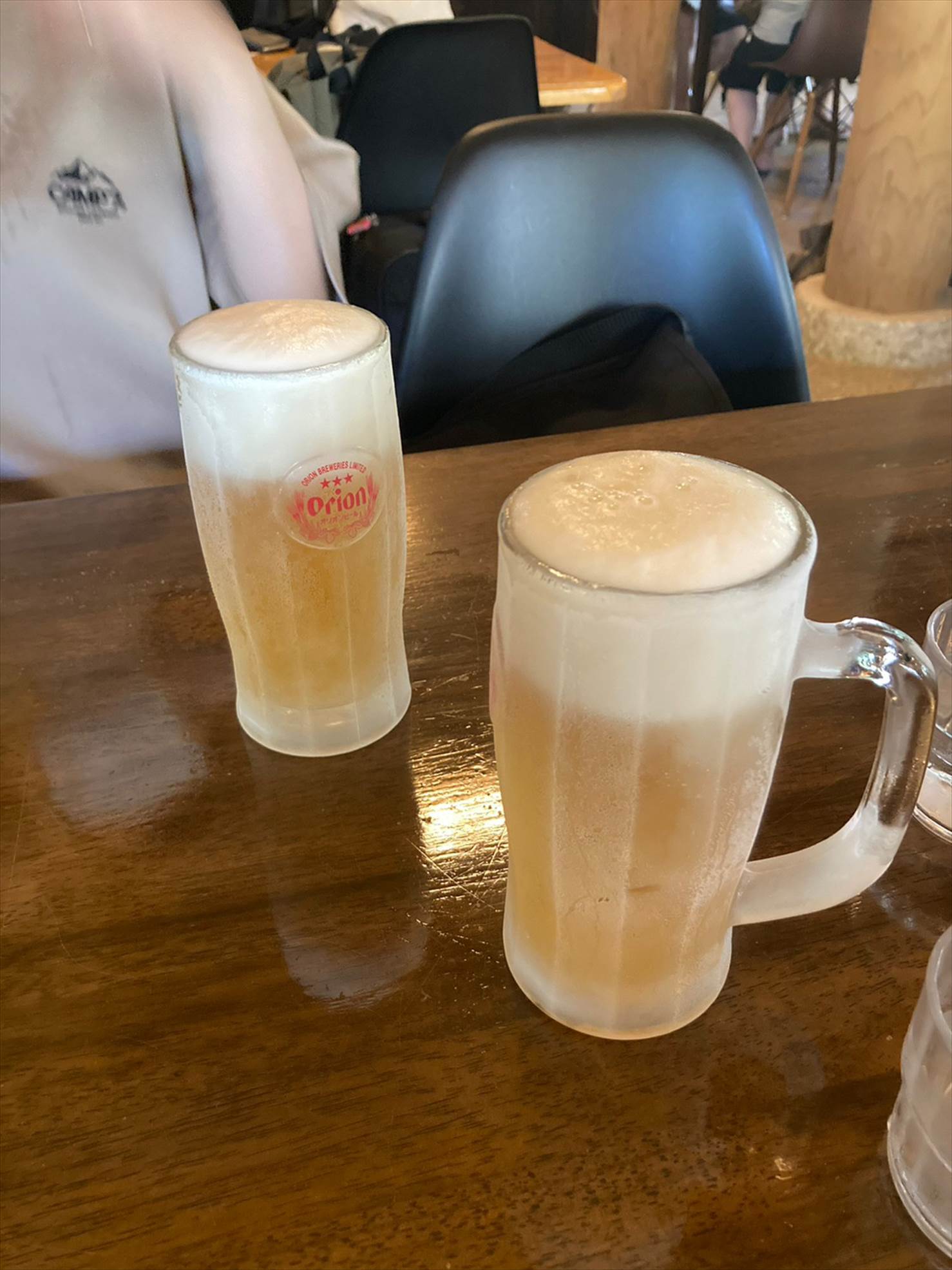 キンキンに冷えたグラスに注がれたオリオンビール、文句無しで最高です…!