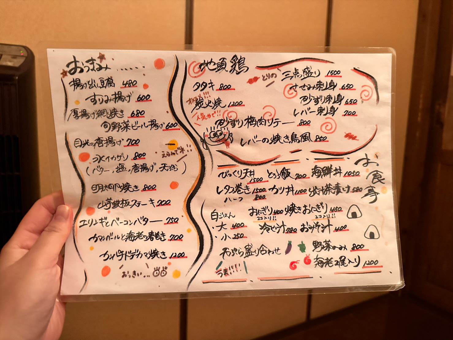 おつまみ・鶏肉メニューが目立ちますが、よくよく見るとお食事メニューも充実してる…!