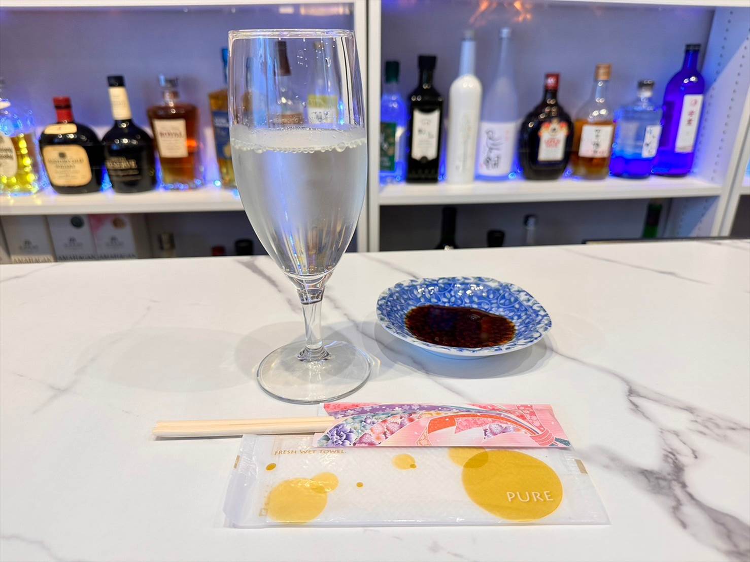 客席はカウンター席を案内されました。眼の前にずらりとお酒が並んでいて圧巻でしたね…!
